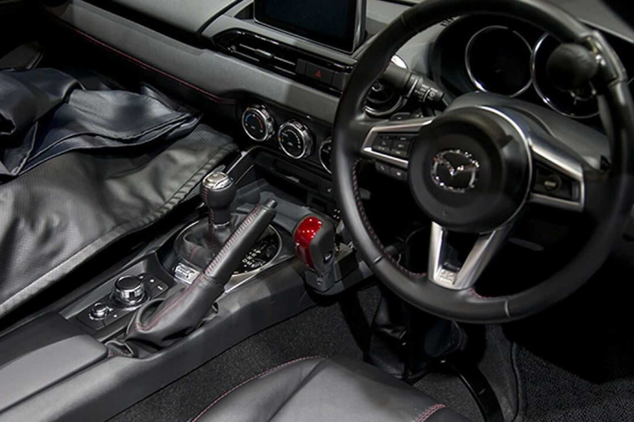 Mazda ha acabado con este problema, al menos en Japón, donde vende un Miata adaptado para personas que sufren alguna discapacidad. Entre los cambios, incluye una especie de mando de control ubicado en al lado de la consola central, una especie de palanca que reemplaza los pedales del acelerador y del freno. Para avanzar, el conductor tiene que tirar de la palanca hacia él y empujarla para frenar.