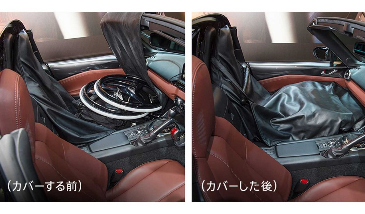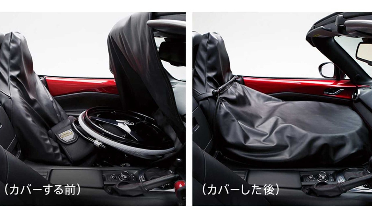 Aparte, opcionalmente se puede montar una perilla giratoria en el volante para reducir la velocidad. Por otro lado, el Mazda MX-5 incluye una funda para guardar la silla de ruedas en el asiento del copiloto y unos soportes laterales para facilitar la entrada y salida del coche. Obviamente, el coche se vende únicamente con un cambio automático de seis relaciones.