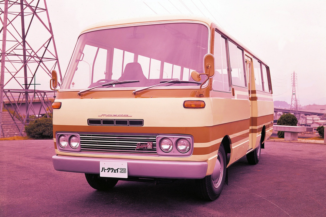 El modelo en cuestión fue el Mazda Parkway que la firma de Hiroshima introdujo en el mercado en 1972, un autobús muy exclusivo que contaba con todo tipo de comodidades, incluyendo un potente sistema de aire acondicionado, tapicería en techo y paneles laterales e incluso asientos ergonómicos para las 26 plazas de capacidad de las que disponía en su interior.