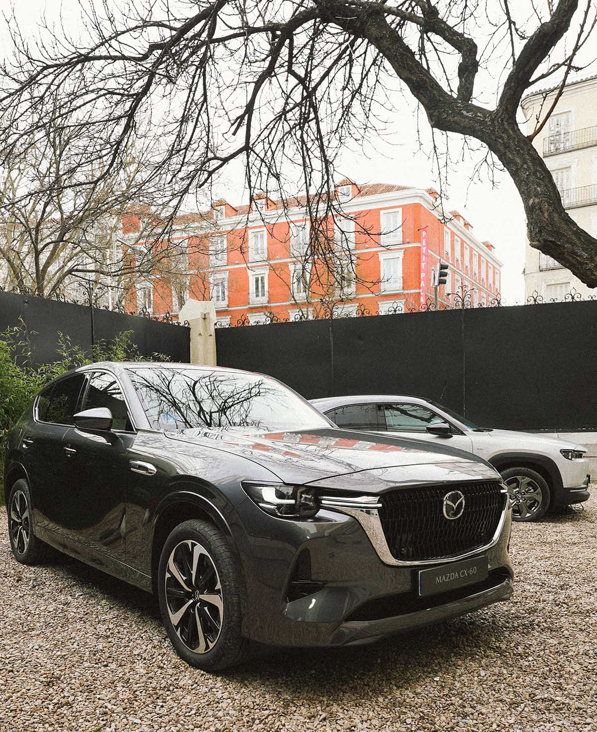 Para terminar de conectar el mundo de Mazda con el de la artesanía, en el patio del palacio de Santa Bárbara se exhibían una unidad del Mazda CX-60 junto a otra del MX-30, dos modelos que reflejan la visión más vanguardista del fabricante japonés.