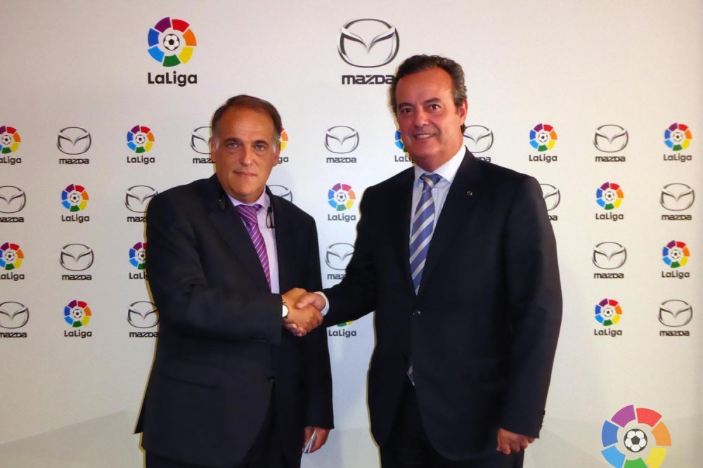 Mazda acaba de convertirse, mediante la firma de un acuerdo, en el patrocinador oficial de LaLiga de futbol profesional para la temporada 2015/2016, de igual que modo que en vehículo oficial dentro del ámbito nacional. Apoyará, por su parte, a las competiciones de la Liga BBVA y la Liga Adelante, y aparecerá en diversos soportes como estadios, plataformas online y redes sociales.