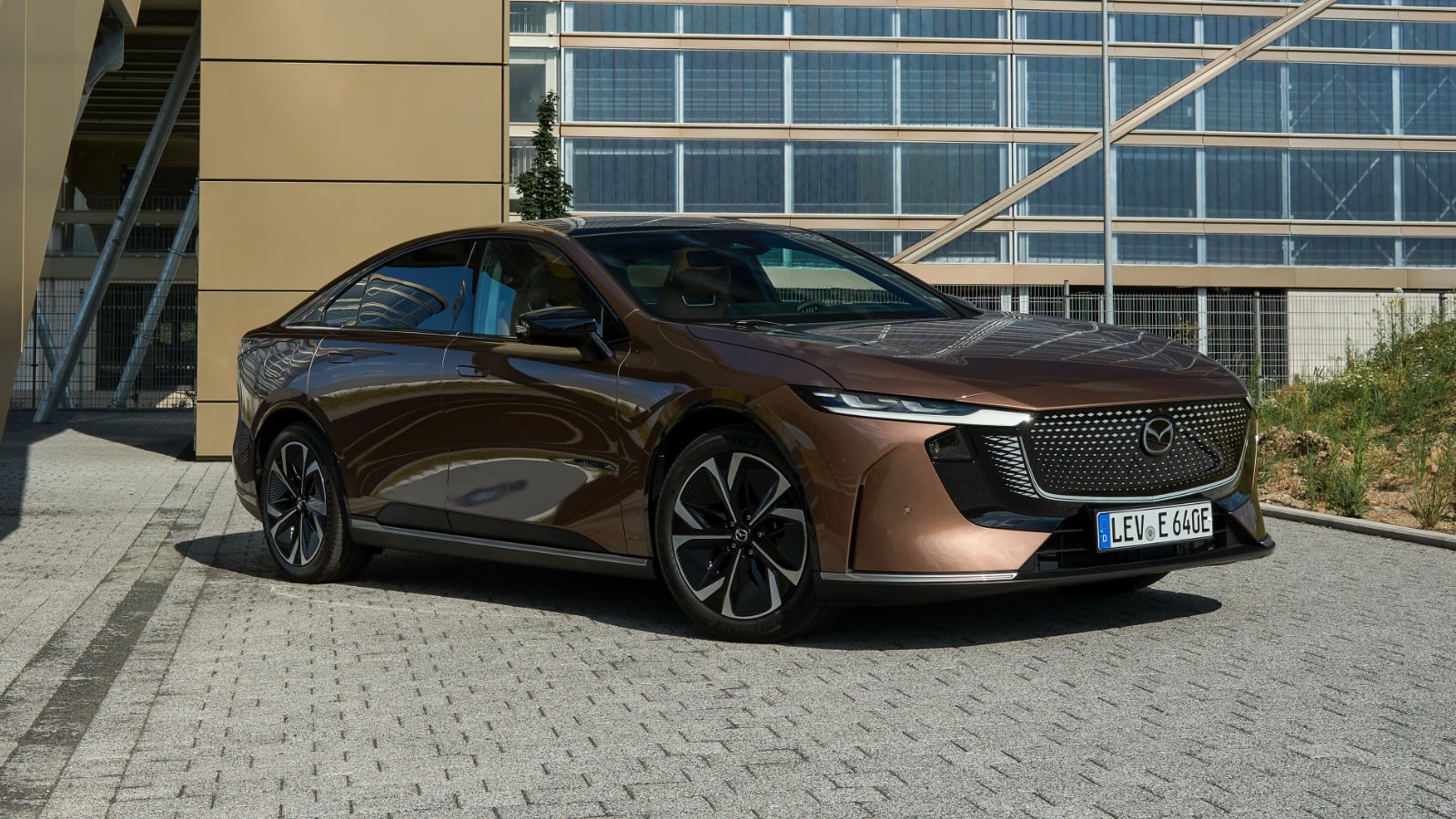 El nuevo Mazda6e luce una silueta envolvente de inspiración coupé, que no solo atrae miradas, sino que también responde al principio japonés de equilibrio y armonía. Sus 4,92 metros de longitud y 1,89 metros de anchura configuran un perfil atlético y elegante, con una cuidada aerodinámica. Los rasgos distintivos, como la parrilla frontal iluminada en forma de ala, los tiradores enrasados y una tira LED trasera que recorre horizontalmente los faros, refuerzan su identidad visual y lo diferencian de su competencia. Todo ello se arropa con una paleta cromática que incluye el icónico Soul Red Crystal y el nuevo Melting Copper, a los que suma un total de ocho tonalidades pensadas para destacar cada matiz de su diseño.