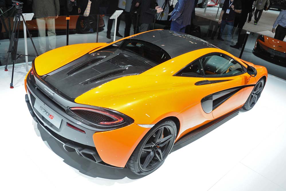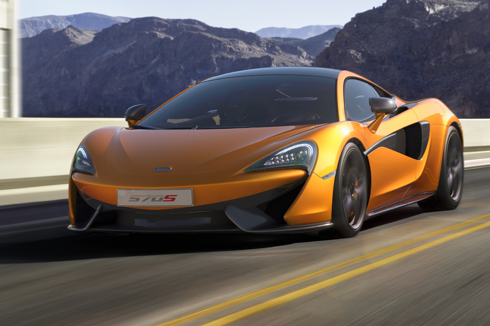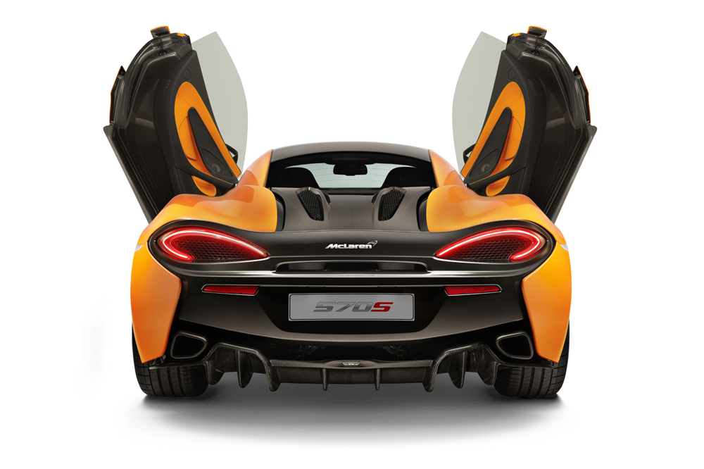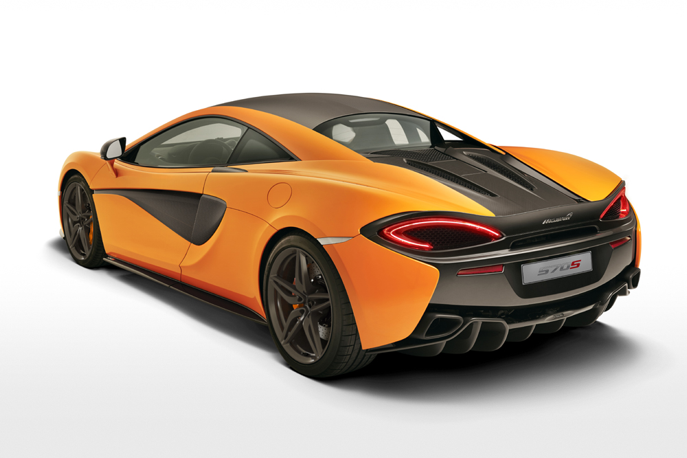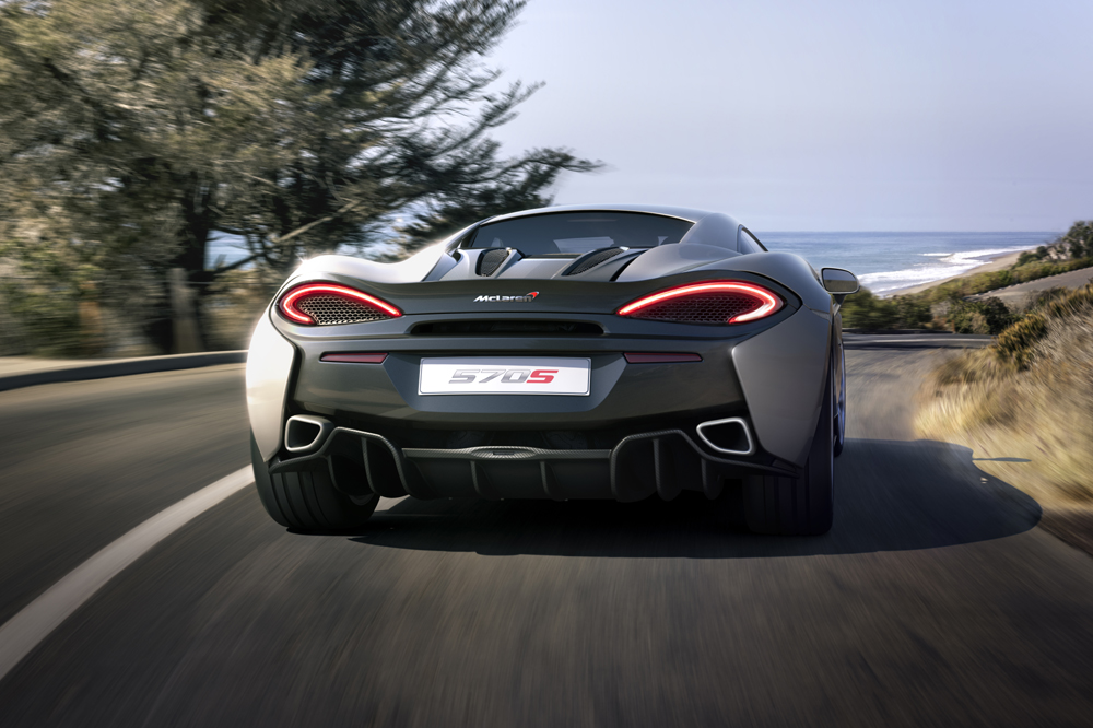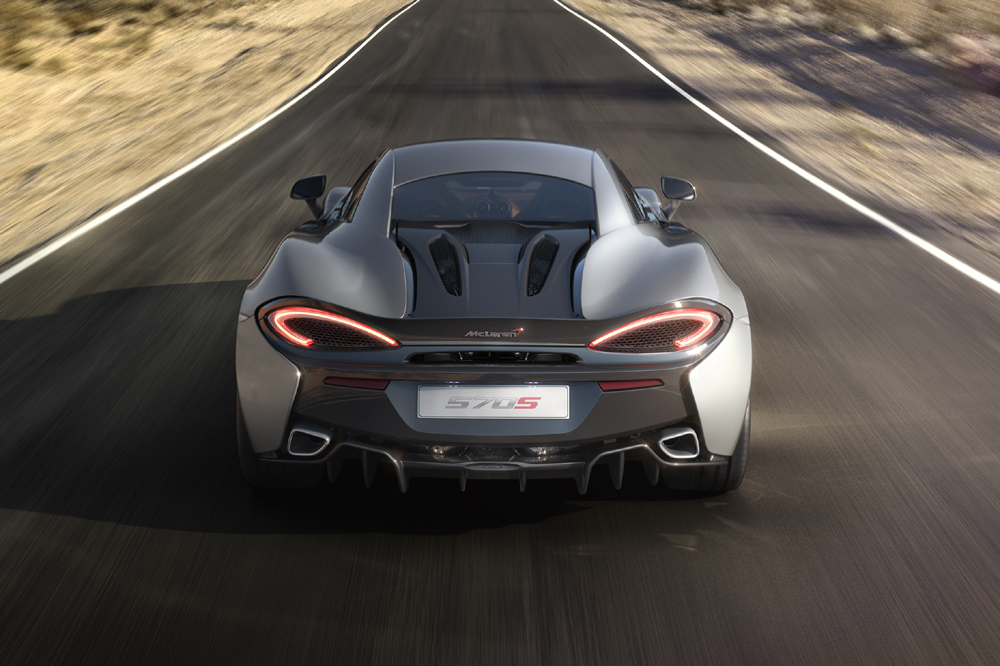 El 570S es un modelo completamente nuevo, con un chasis de fibra de carbono específico y un diseño exterior diferenciado. El propulsor 3.8 V8 biturbo sí que ha sido heredado de sus hermanos mayores (también lo emplea el todopoderoso McLaren P1), pero para la ocasión, dispone de hasta un 30% de componentes rediseñados. La potencia máxima se sitúa en 570 CV a 7.400 revoluciones por minuto y el par motor en 600 Nm, disponibles entre 5.000 y 6.000 vueltas.