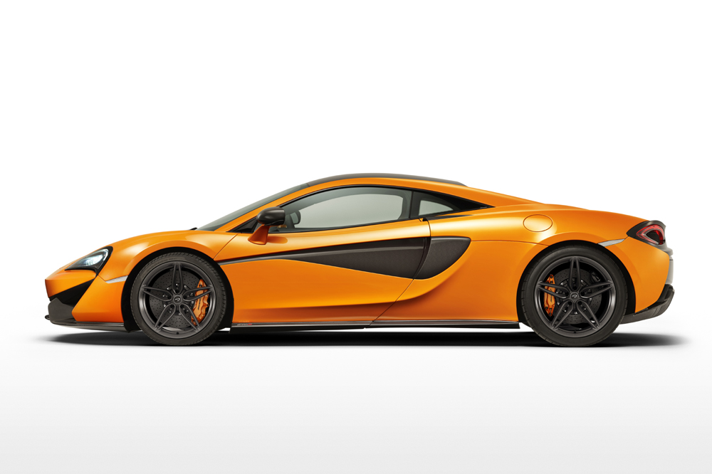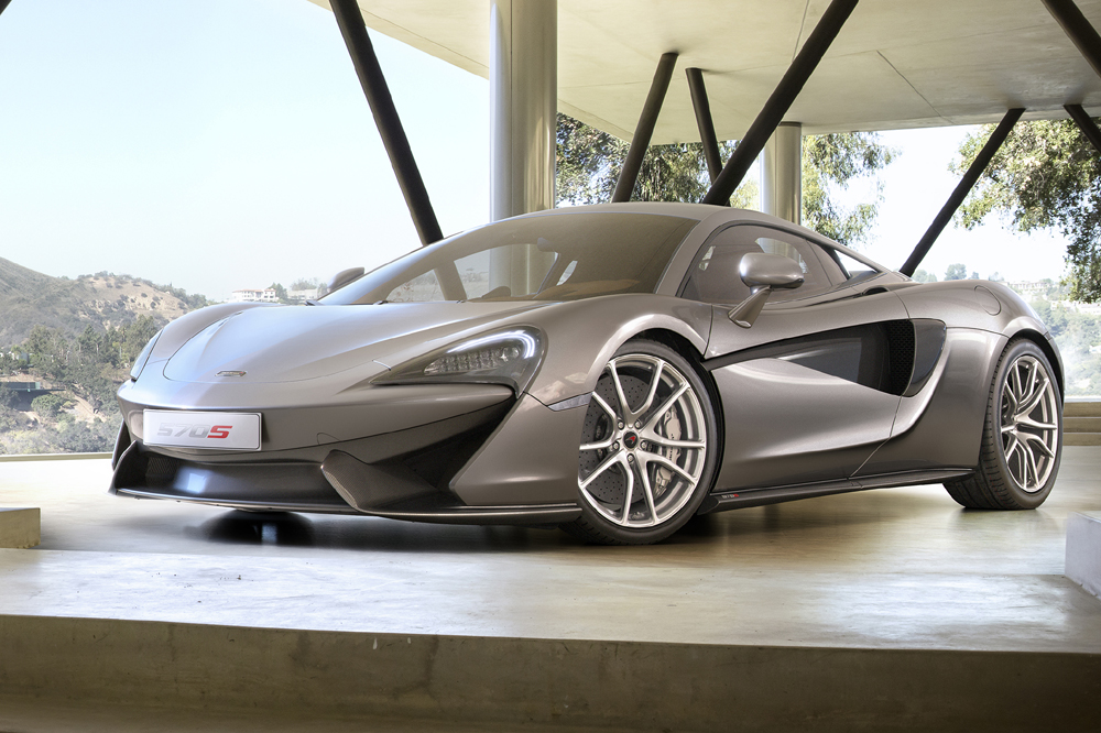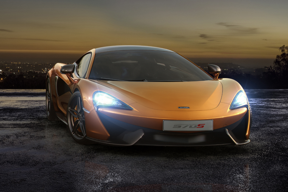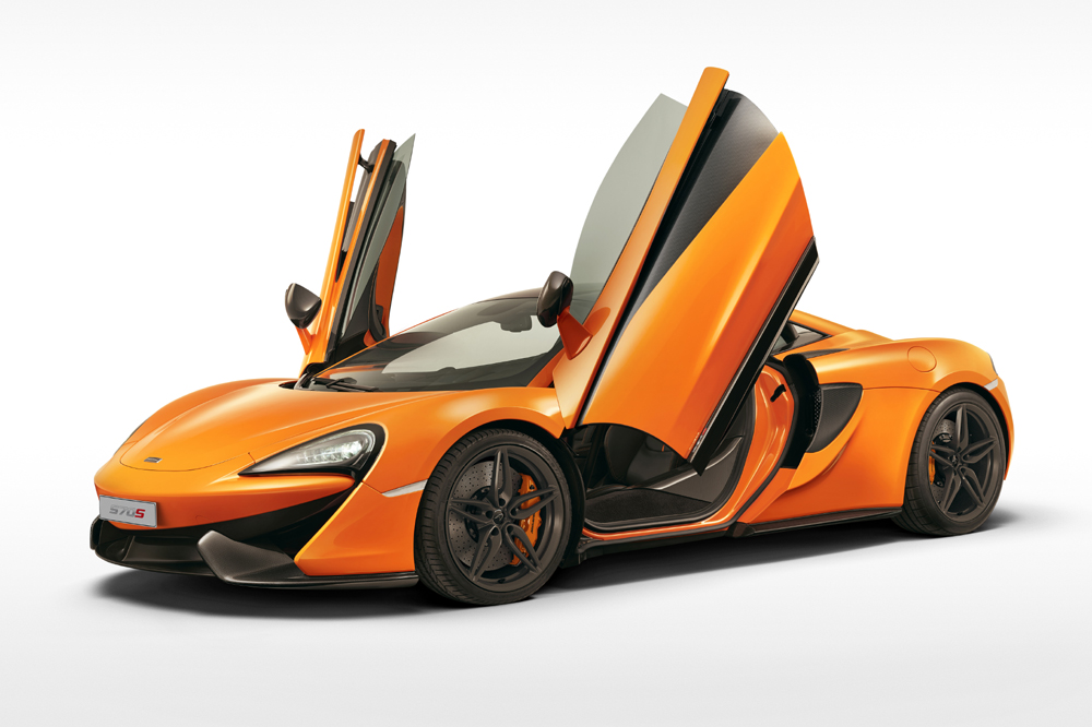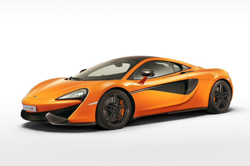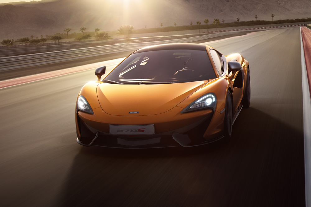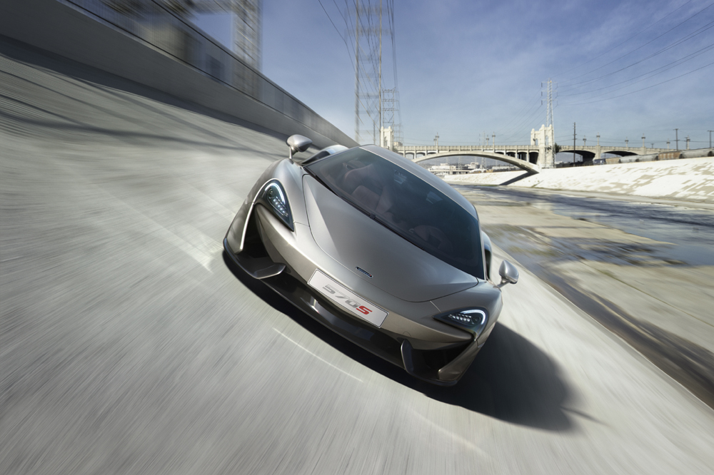 El 570S es un modelo completamente nuevo, con un chasis de fibra de carbono específico y un diseño exterior diferenciado. El propulsor 3.8 V8 biturbo sí que ha sido heredado de sus hermanos mayores (también lo emplea el todopoderoso McLaren P1), pero para la ocasión, dispone de hasta un 30% de componentes rediseñados. La potencia máxima se sitúa en 570 CV a 7.400 revoluciones por minuto y el par motor en 600 Nm, disponibles entre 5.000 y 6.000 vueltas.