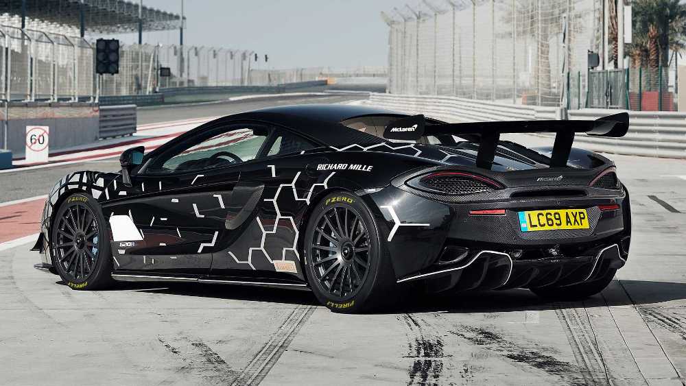 El interior también recibe algunos cambios en comparación con el 570S y el 570S GT4 de carreras. Ahora encontramos asientos de carreras de fibra de carbono con arneses de seis puntos, correas en las puertas y levas para el cambio de carbono. Se han incluido algunos guiños a los coches de carreras, como la marca roja en la parte superior del volante, un sistema de telemetría o una entrada de aire en el techo opcional.