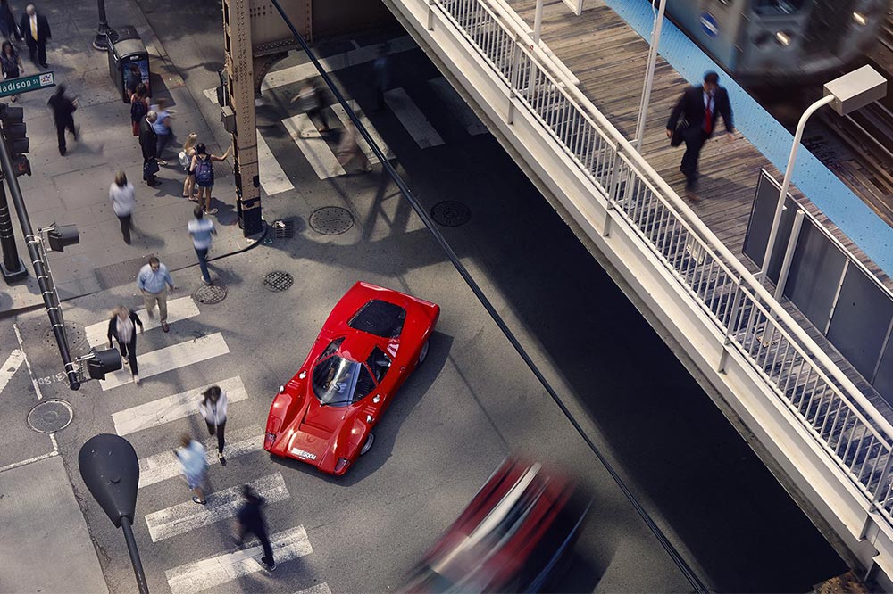 La ciudad elegida para dar una vuelta ha sido Chicago. Pueden considerarse afortunados, ya que este McLaren M6GT de 1969 de Bruce McLaren tan solo tiene 3.369 km en su odómetro. Así que no mucha gente pude presumir de haberlo visto.