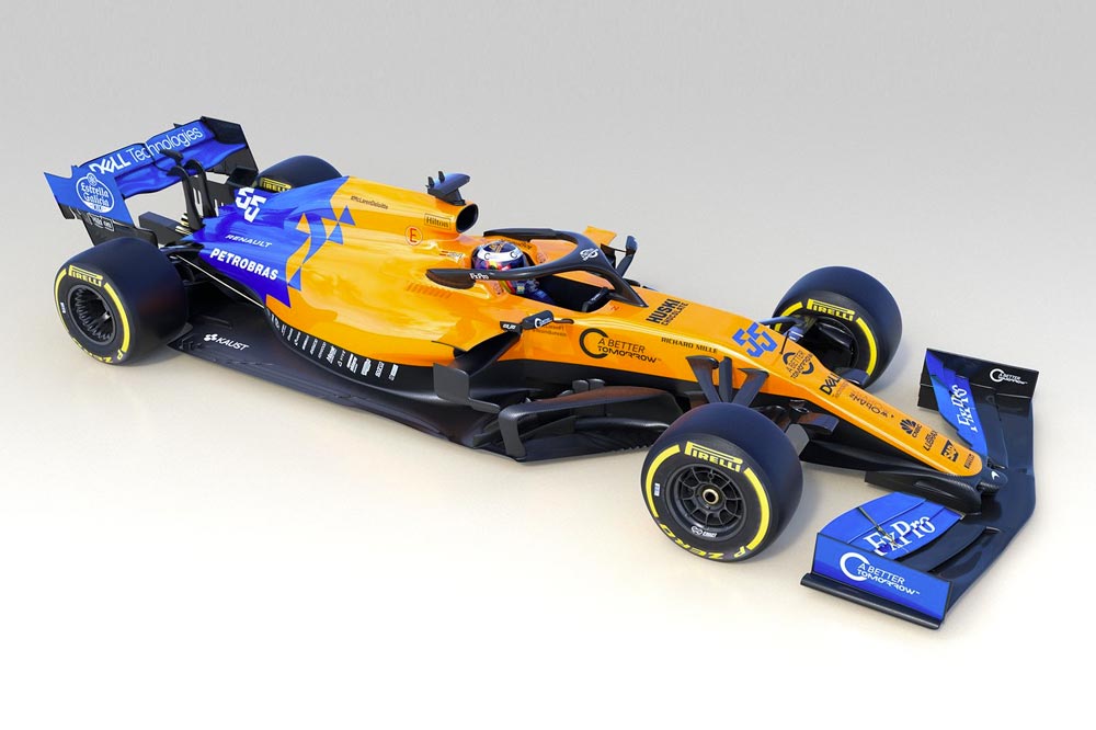 El coche de Carlos Sainz para este 2019 mantiene los colores que lucieron los bólidos de Fernando Alonso y a Stoffel Vandoorne: naranja papaya y azul. Lo que sí ha cambiado ha sido la aerodinámica, el chasis y el motor Renault.