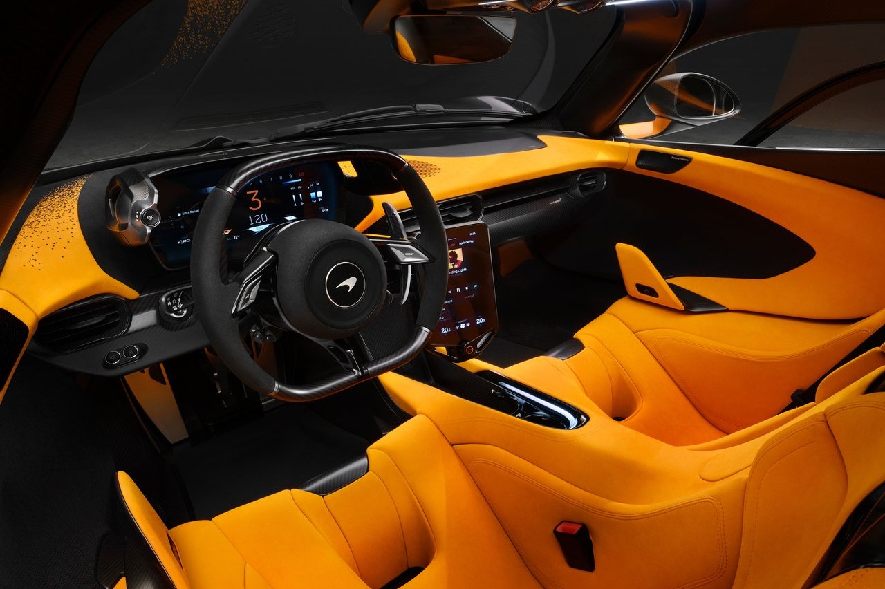 Las puertas tienen apertura vertical, una solución que, según McLaren, utiliza por requerimientos aerodinámicos que permiten optimizar el flujo de aire desde los pasos de rueda delanteros hacia los radiadores. La aerodinámica del coche cambia, en función de si se utiliza en circuito o en carretera.
