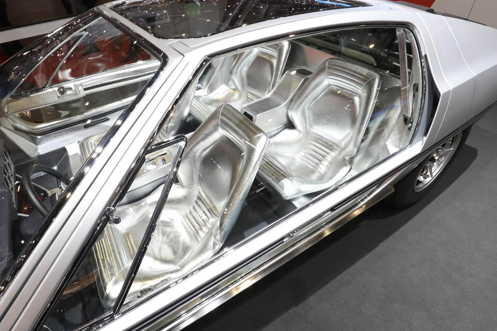 El Salón del Automóvil de Ginebra de 1967 recibió la idea llevada a producción de Ferrucio Lamborghini: un coche de cuatro plazas. Fue Marcello Gandini, de Bertone, el que trajo a la vida este estudio de diseño caracterizado por su motor V6 -tomaba la mitad del V12 de Sant'Agata Bolognese- y por sus puertas de vidrio transparentes -característica que toma hoy en día el McLaren Senna-.