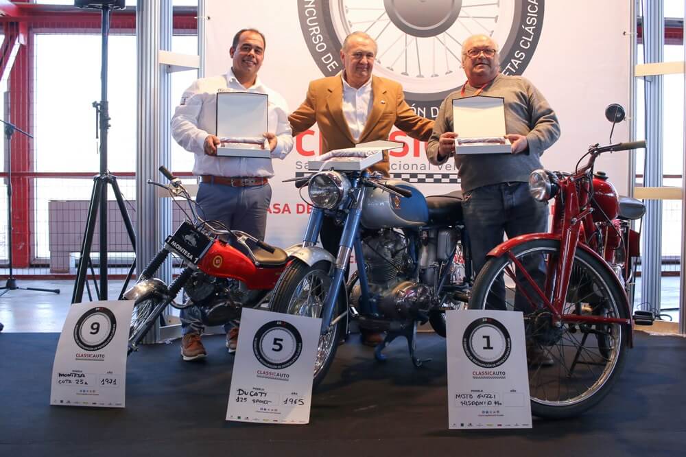 Además, también se celebró un Concurso de Restauración de Motocicletas centrado en las unidades fabricadas antes de 1972. El primer premio fue obtenido por una Ducati 125 Sport de 1965 y en la categoría de ciclomotores venció una Guzzi Hispania de 49 cc y en mono de campo una Montesa Cota 25ª de 1971. Por último, ClassicAuto Madrid 2018 reservó un lugar especial para dos homenajes, uno a Francisco Pueche, quien lleva 50 años dedicados a la comercialización de vehículos de colección, y a Rafael Onieva Ariza, creador de la marca de Motocicletas y motocarros ROA que aportaron soluciones de movilidad a la sociedad española en los años 50.