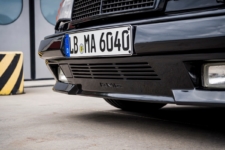 AMG siguió las pautas establecidas en todas sus preparaciones y equipó el Mercedes 300 E 6.0 AMG “The Hammer” con un completo kit de carrocería. Su estética ahora ofrecía parachoques nuevos, taloneras, llantas específicas de 17 pulgadas, un spoiler trasero y la eliminación de cualquier anagrama de Mercedes. Se pintó de negro -de ahí que se le conociera como ‘Black Hammer’-, y se le ofreció a la prensa especializada para que lanzaran su veredicto.