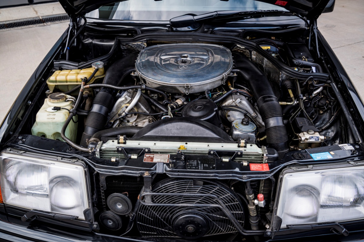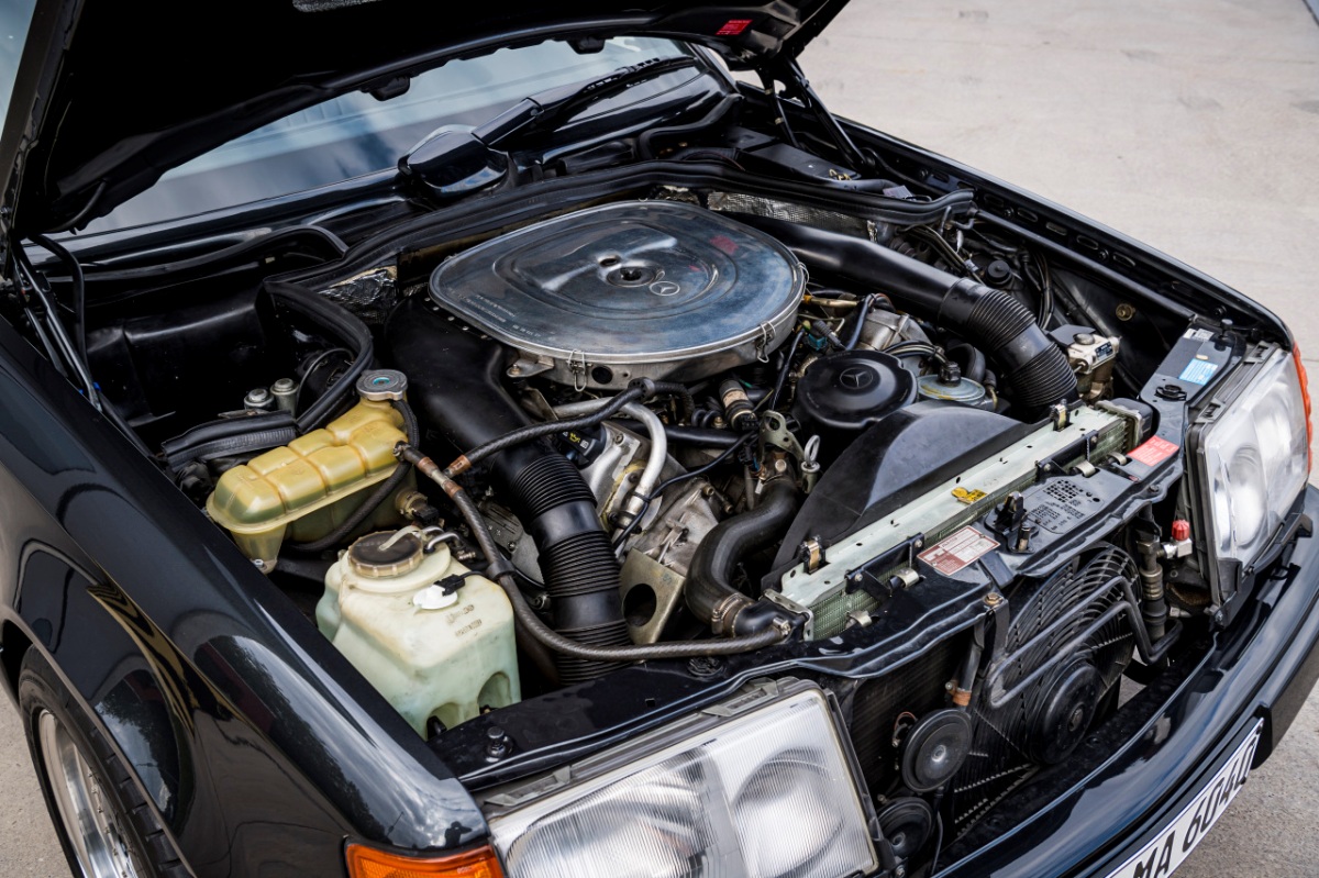 Este motor, tras recibir una serie de mejoras específicas, entrega 340 CV de potencia. Sin embargo, el bloque pesa 55 kg más que la versión de origen. Se decide entonces implementar una serie de refuerzos para el chasis y se desplaza la batería al maletero. El W124 ahora pesa 400 kg más que el Clase E estándar, aunque obtiene un mejor reparto de pesos. Más tarde, los ingenieros deciden mejorar el motor de ocho cilindros e instalan el V8 de 5.6 litros que propulsaba a los 560 SE y 560 SEC. Esto se traduce en un incremento de potencia que le permite alcanzar los 360 CV y al nacimiento del Mercedes 300 E 5.6 AMG. Ya es considerablemente más potente que el M5 E28, y de largo es la berlina de segmento E más rápida del mercado. Pero AMG quiere más.