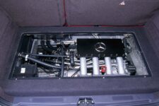 Entregaba una potencia de 250 CV y 360 Nm de par, conectado a una caja de cambios manual de cinco relaciones. Aunque no hay datos oficiales, se dice que tardaba unos 5,9 segundos en acelerar de 0 a 100 km/h y alcanzaba los 230 km/h. Esto ya era otra cosa. Los dos motores se sincronizaban mediante un embrague automático y el motor trasero se accionaba pulsando un botón. Para que te hagas una idea, un Audi S3 de la época tenía 209 CV.