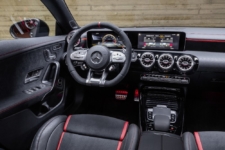 Una vez en el interior del CLA 45 4MATIC+ Shooting Brake, los compradores encontrarán asientos deportivos de microfibra y piel sintética con costuras en contraste de color rojo, un color también presente en los cinturones de seguridad. Los detalles en negro brillante y las salidas de aire cromadas con detalles en rojo también forman parte del estilo interior. En la variante S de la versión más deportiva del nuevo Mercedes CLA Shooting Brake, estos detalles en rojo han sido reemplazados por el color amarillo. Se ofrece también un volante AMG Performance terminado en microfibra, al igual que los paneles de las puertas, y el sistema MBUX es el protagonista, con funciones añadidas propias de un vehículo AMG.