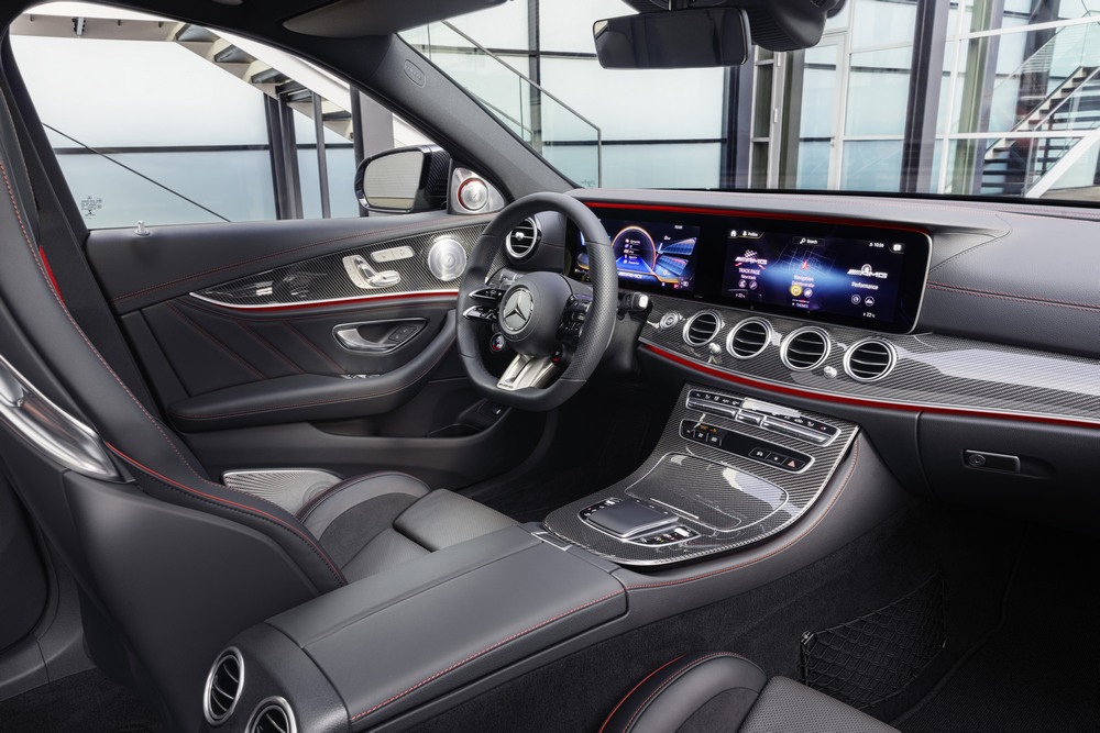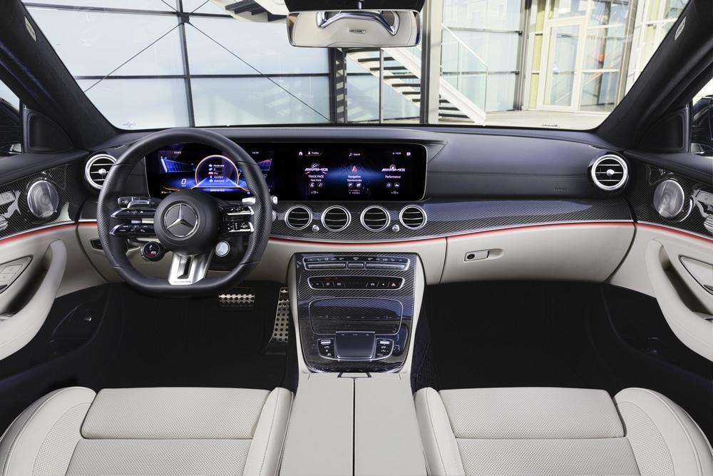 Por dentro, los E53 4Matic+ Berlina y E53 4Matic+ Estate reciben la última evolución del sistema de información y entretenimiento MBUX. Cuenta con funciones específicas de AMG tanto para la pantalla del cuadro de instrumentos como la de medios táctil y se puede manejar mediante los mandos del volante, órdenes vocales o por gestos.