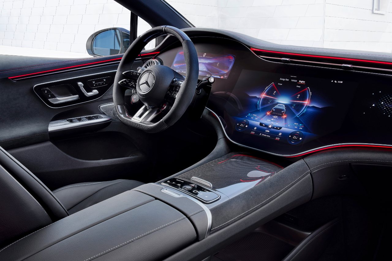 Lo interesante es que puede instalar el AMG Dynamic Plus Package, que eleva la potencia a 687 CV y el par máximo a 1.000 Nm, lo que permite un nuevo recorte en el crono par alcanzar los 100 km/h desde parado en 3,3 segundos y aumenta otra vez la velocidad máxima, en este caso hasta 240 km/h. Esto afectará a la autonomía, pero Mercedes no ha concretado el dato.