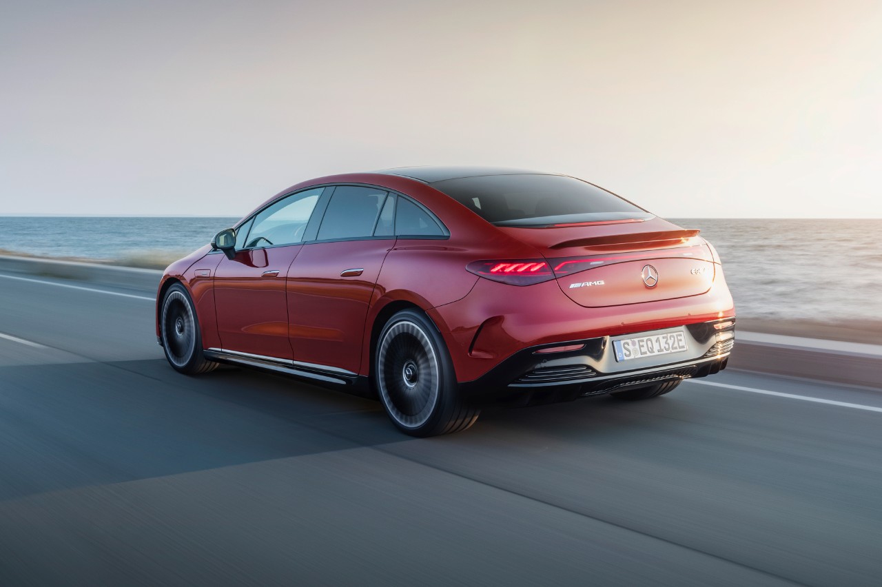 Como ocurre con los AMG de combustión, el resto del apartado mecánico ha sido mejorado respecto al EQE convencional: suspensión neumática AMG Ride Control+, eje trasero direccional de serie que gira hasta 3,6 grados, sistema de frenos con discos de 415 mm delante mordidos por pinzas de seis pistones y traseros de 378 mm con pinzas monopistón, opción de frenos carbocerámicos, etc.