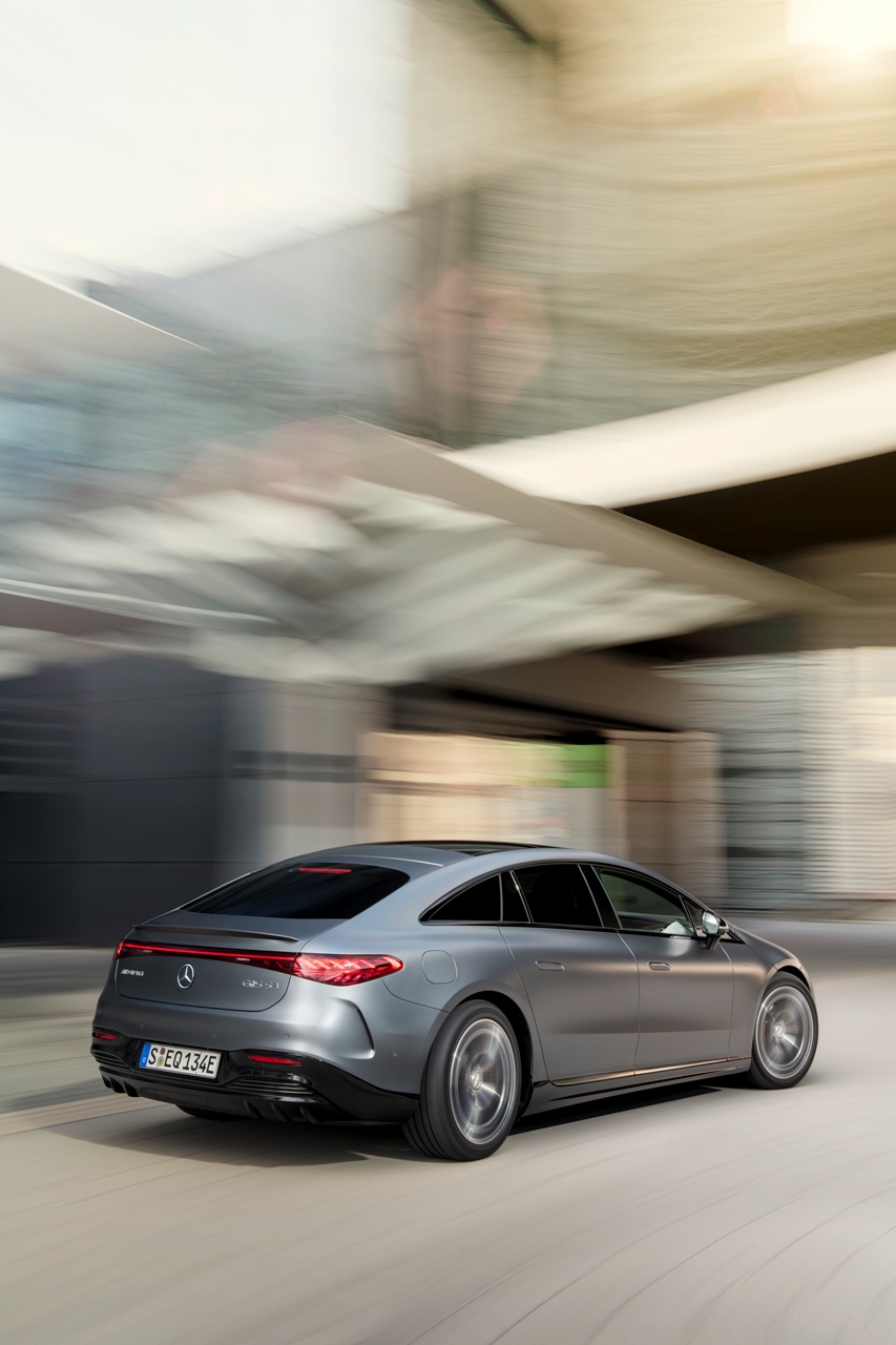 A nivel estético, la versión AMG del Mercedes EQS luce los mismos parachoques del paquete AMG Line que la versión estándar. Sin embargo, para diferenciarlo del modelo no AMG, la marca ha añadido elementos cromados verticales en la parrilla cubierta. También hay un alerón trasero más grande y llantas de aleación AMG de 21 o 22 pulgadas en diseño Aero o Heritage. Se pueden añadir opciones como el paquete Nigh AMG Dark Chrome, acabados de carbono o pinzas de freno rojas.