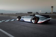 Si seguimos en los laterales, el Mercedes-Benz EQ Silver Arrow Concept cuenta con taloneras específicas y una especie de tapacubos metálicos que tan solo cubren la mitad delantera de las llantas. Las tres franjas laterales como salidas de aire son un claro guiño al W125 original. Mientras tanto, la zaga presenta un alerón longitudinal, unos marcados pasos de rueda que cubren unas llantas de 26 pulgadas (24 pulgadas en el tren delantero) y una única franja de luz LED que recorre todo el ancho del coche.