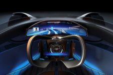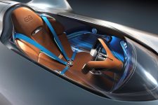 El interior del último prototipo retro-futurista de Mercedes presenta cuero marrón en el asiento monoplaza y un volante con una pantalla táctil que incluye toda la información. La pedalera de competición y otra gran pantalla digital que permite, entre otras cosas, competir contra un ‘fantasma’ para mejorar, por ejemplo, tus tiempos en circuito. La fibra de carbono, la madera, el cuero y los apliques metálicos son la tónica de esta cabina.