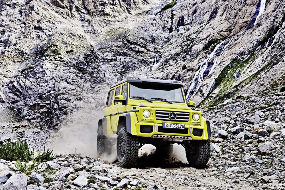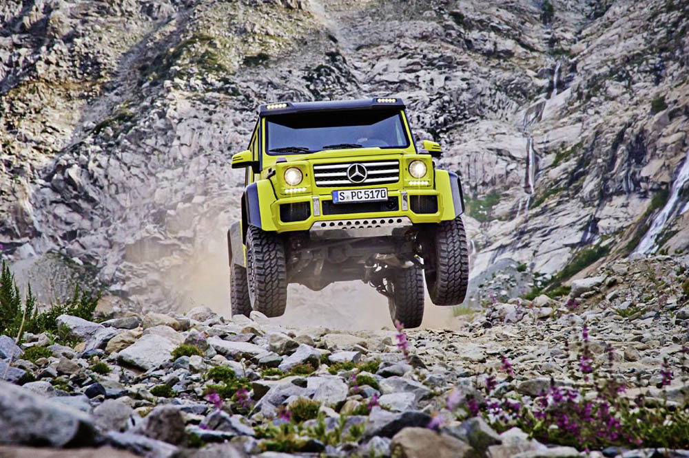El G 500 4×4² básicamente es un Clase G de batalla larga (cinco puertas) con mayor altura libre al suelo en comparación con las variantes convencionales, cosa que se ha logrado con la utilización de los mismos ejes rígidos pórticos que en la variante 6x6 o en el todavía más exclusivo Mercedes-Maybach G 650 Landaulet. Son similares a los que podemos encontrar en el Mercedes Unimog (denominados en inglés como ‘portal axles’) y se caracterizan por que el eje cuenta con una serie de engranajes que le permiten situarse por encima del centro de las ruedas.