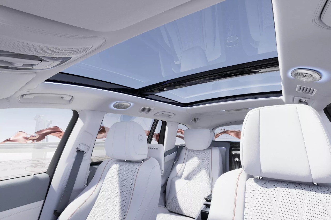 Al acceder al habitáculo el sistema de iluminación de las puertas proyecta el logo de la firma en el suelo, mientras que los asientos están tapizados en cuero, que presenta un nuevo patrón de costuras y perforaciones y puede estar acabado en una combinación de colores claros o en marrón y beige.