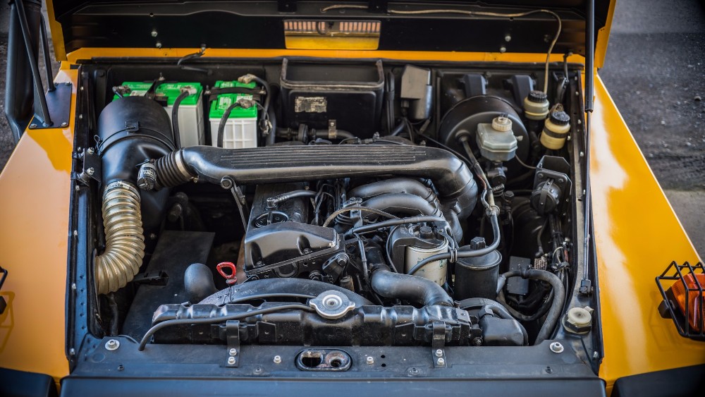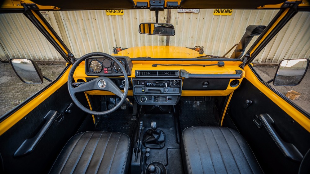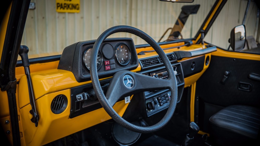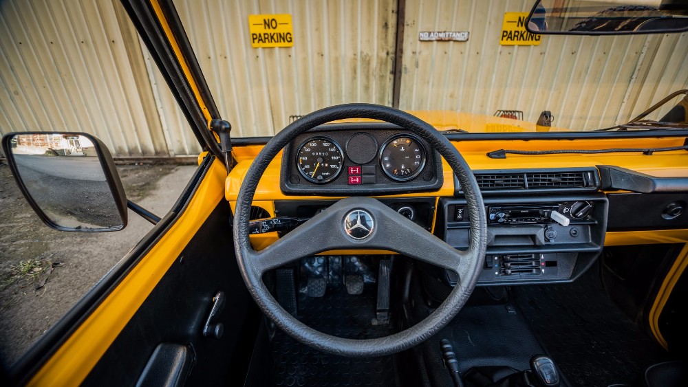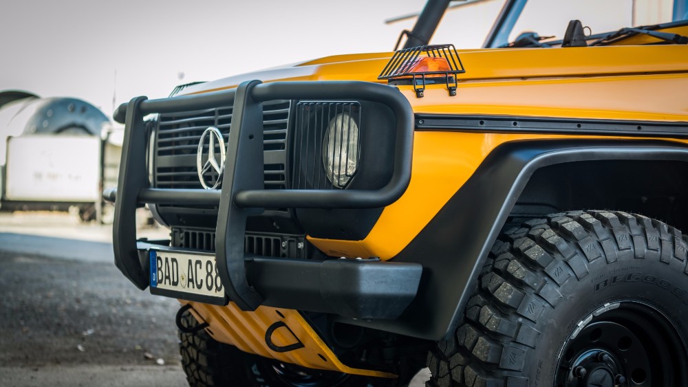 Esta unidad estaba siendo utilizada para servicios militares hasta hace unos años, cuando se dio de baja del servicio y pasó a ser un vehículo totalmente civil tras una completa restauración llevada a cabo en Alemania. La carrocería fue llevada hasta el metal desnudo y bañada con una pintura nueva de color amarillo, se reconstruyó por completo la caja de cambios manual de cinco velocidades, se instaló un nuevo embrague Sachs, asientos MB-Tex, una nueva suspensión 5 cm más alta y un juego de llantas de acero con neumáticos todoterreno de 33 pulgadas.