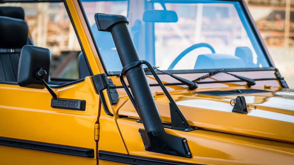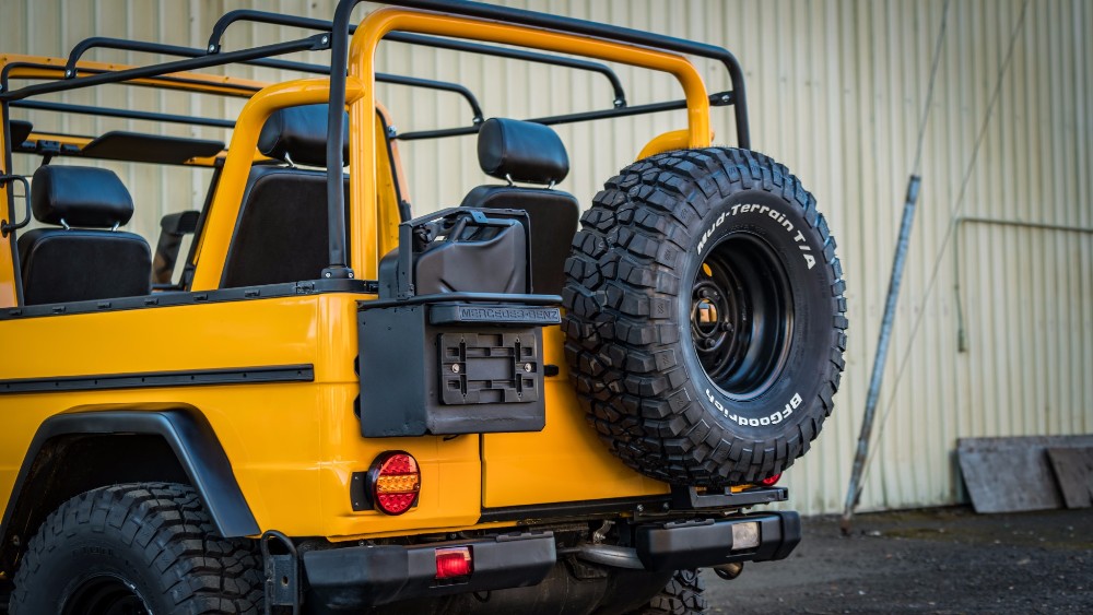 También se le ha instalado un sistema de frenos Brembo, un kit de snorkel original, un protector para la parrilla, guardabarros más anchos, faros traseros de LED y un nuevo techo de vinilo. El interior también ha sido rehabilitado con detalles en color exterior y algunos detalles menores, mientras que la potencia proviene de un motor OM602 no original de cinco cilindros y 2.5 litros diésel con diferenciales de bloqueo en ambos ejes.