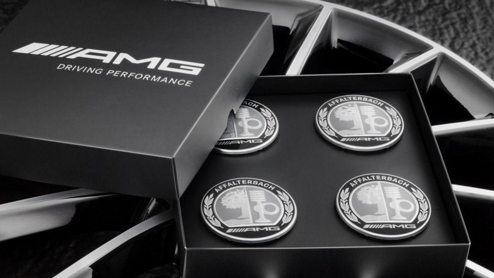 Mercedes-AMG asegura que su logotipo para cada cubrebuje de las llantas se fabrica con una "gran atención por los detalles". Como explica la compañía, los tonos grises y negros se aplican a cada componente utilizando un proceso de impresión especial que luego permite grabar en relieve para convertirse en el emblema que puedes ver en la galería. Los emblemas de aluminio son sellados con una capa transparente y aplicados sobre una base de plástico.