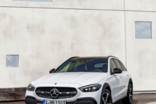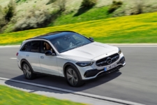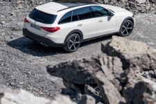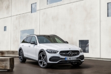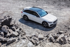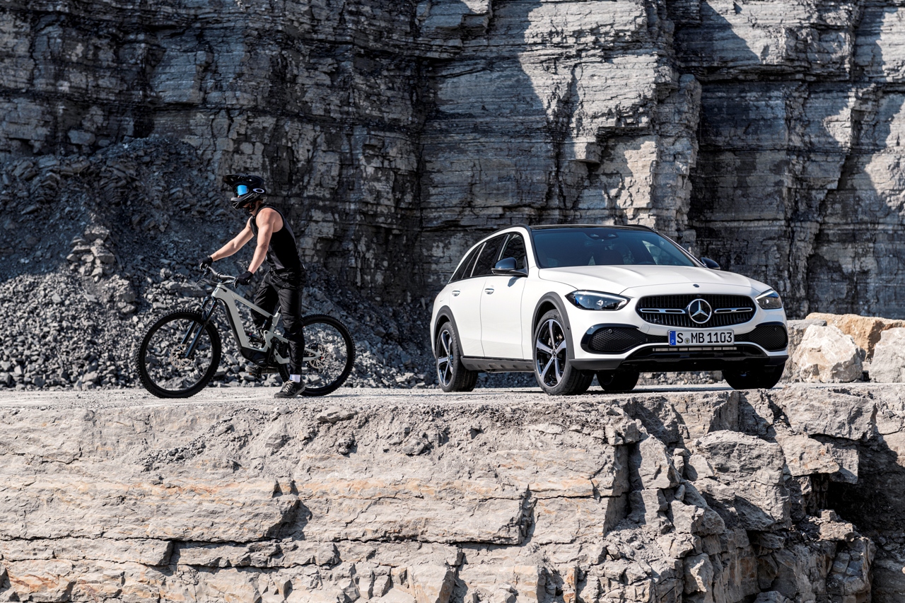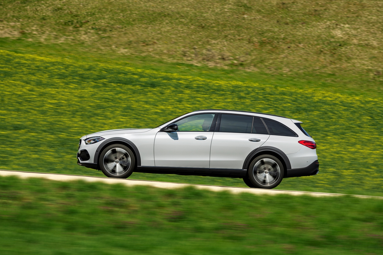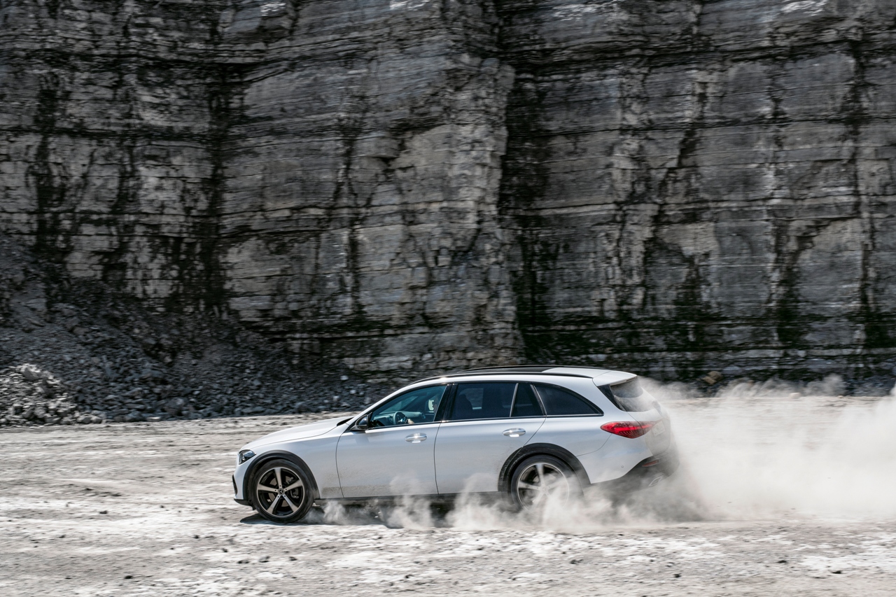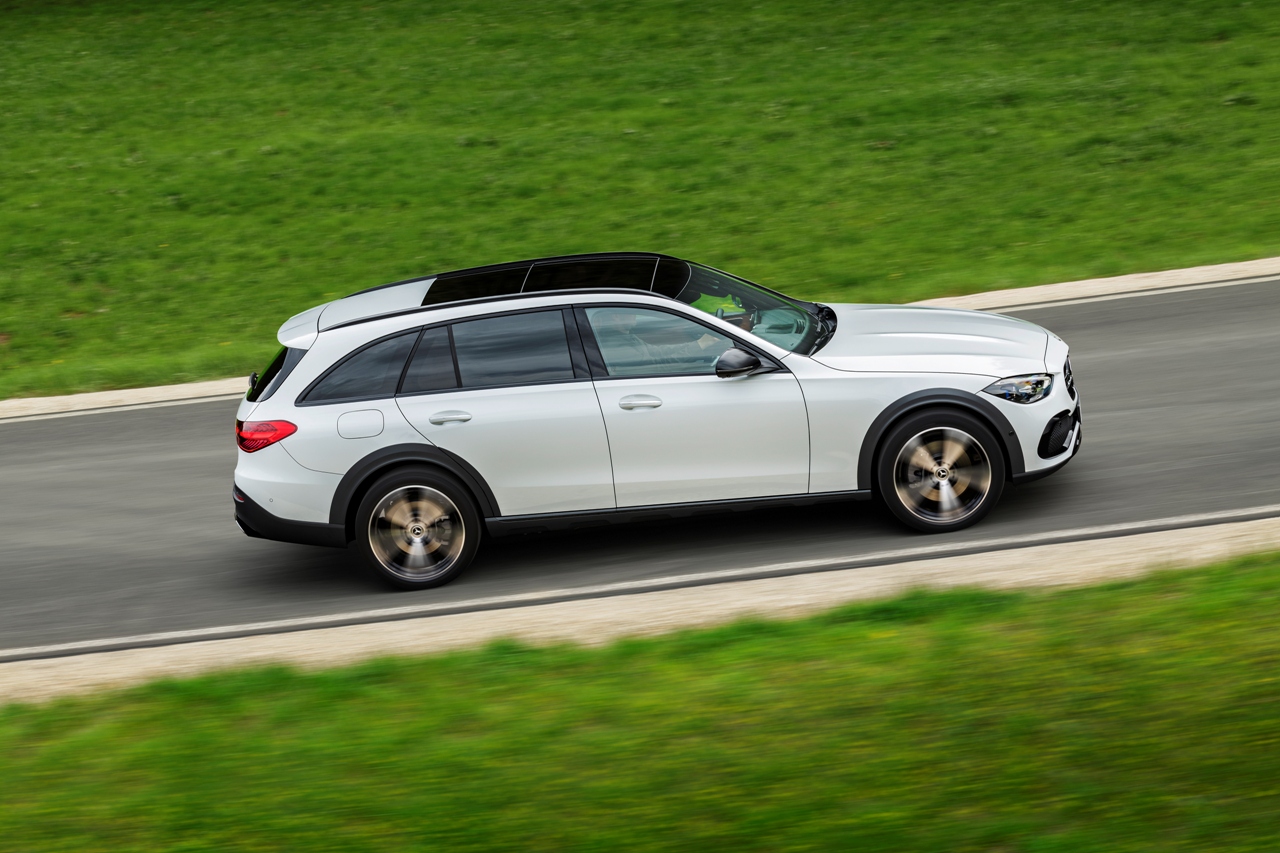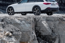 Basado en la carrocería Estate del nuevo Clase C, la versión All-Terrain presenta una parrilla con una sola lama horizontal y perfiles en negro brillante. El parachoques delantero incluye una parte de plástico de color gris oscuro con superficie estructurada y una protección estética de bajos en color cromo. También se ha equipado revestimientos superpuestos de los pasaruedas de color gris oscuro mate en los guardabarros y la pared lateral trasera.