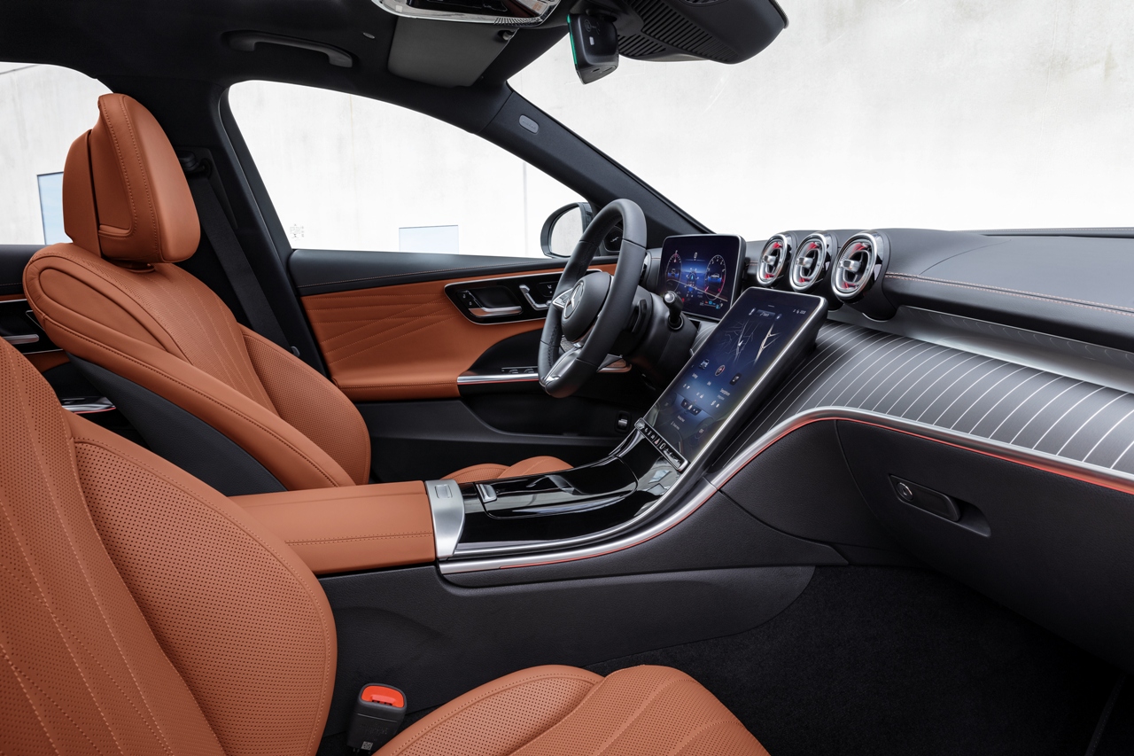 El interior del nuevo Clase C All-Terrain 2022 apenas presenta cambios sobre la base del Clase C Estate. Se basa en el acabado Avantgarde y está disponible en tres conceptos cromáticos: negro, beige macchiato/negro y marrón Siena/negro. Los compradores pueden elegir entre una pantalla de 10,25 pulgadas y otra de 12,3 pulgadas, con una nueva configuración Offroad que permite consultar datos específicos sobre la conducción fuera del asfalto. Información como la inclinación longitudinal, la inclinación lateral y el ángulo de orientación de las ruedas, las coordenadas geográficas y una brújula, están disponibles.