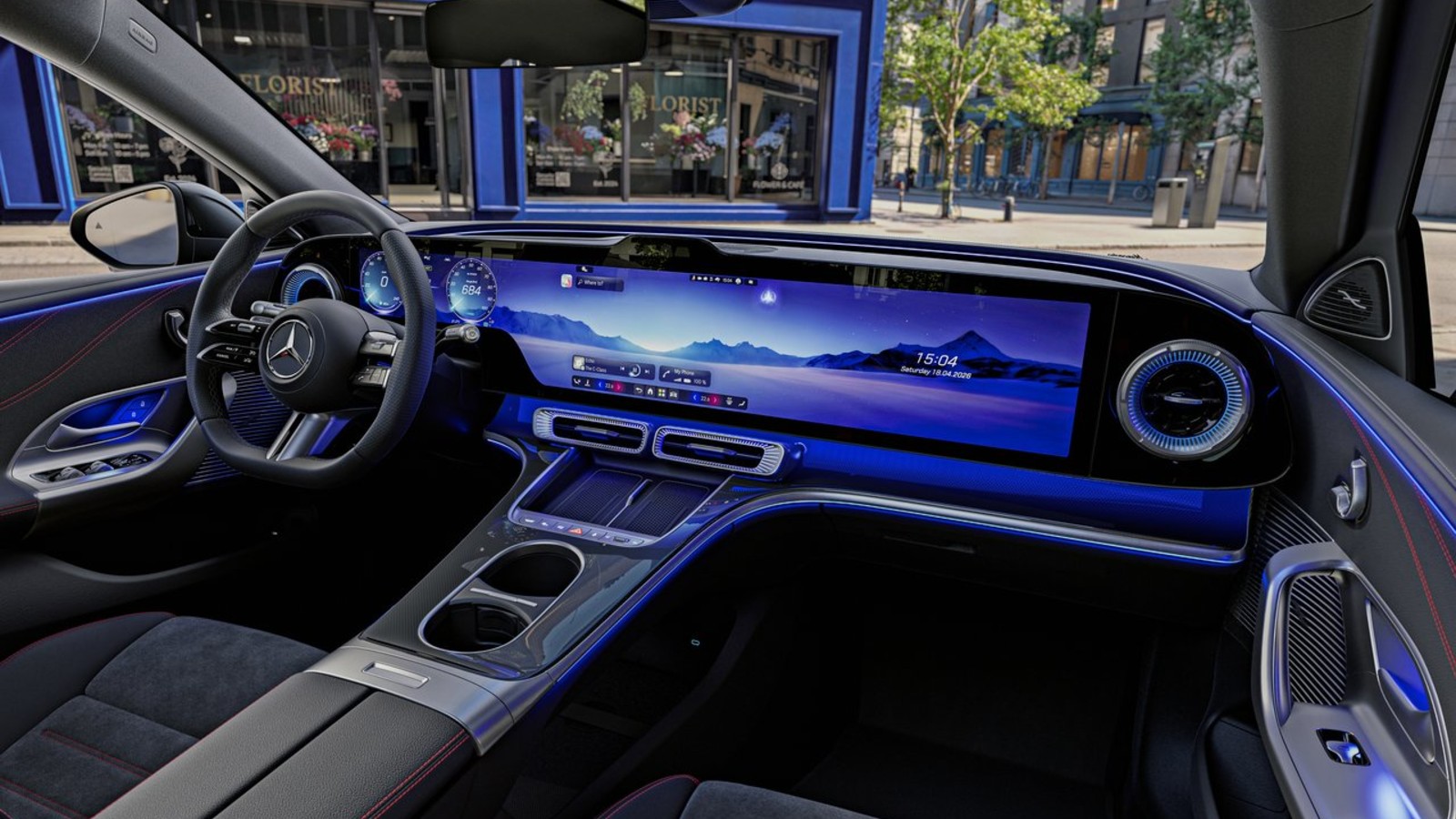 En el interior del nuevo Clase C Eléctrico encontramos el ya habitual aspecto de todos los coches eléctricos de Mercedes. Es decir, un salpicadero convertido prácticamente en una pantalla digital. El sistema multimedia puede tener dos configuraciones: MBUX Superscreen o MBUX Hyperscreen, este último acoge tres pantallas bajo una misma superficie de cristal hasta alcanzar casi un metro desde un extremo a otro. Utiliza un sistema operativo MB.OS que permite manejar todas las funciones del coche, incluye un asistente virtual que funciona con inteligencia artificial y recibe actualizaciones remotas.