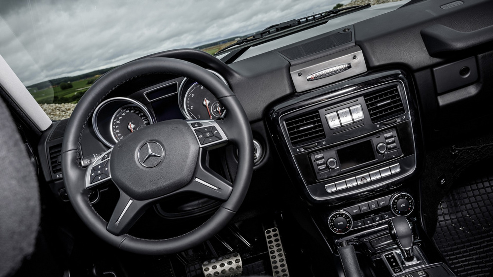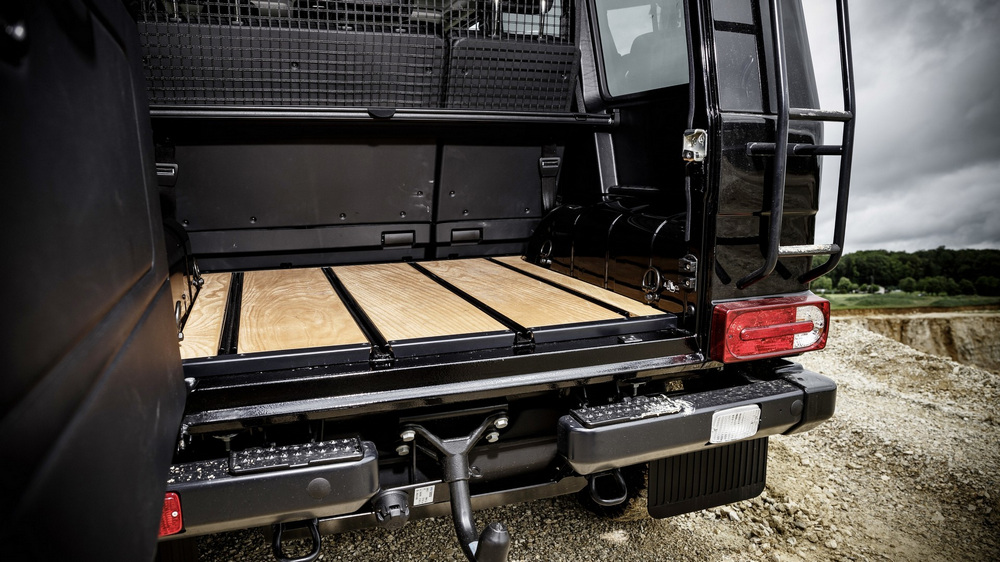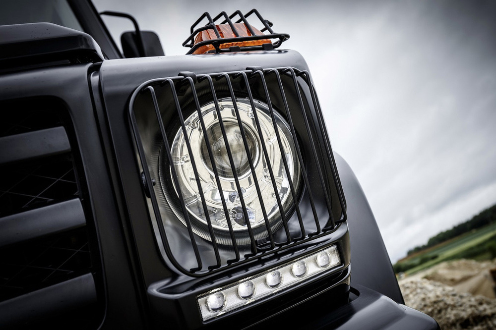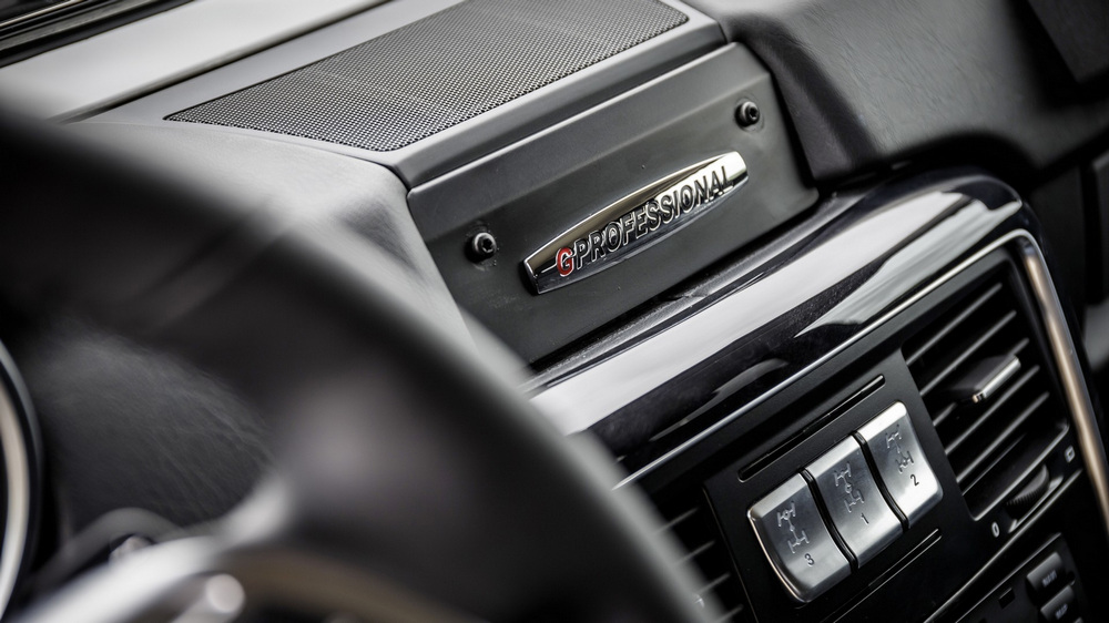 Por ejemplo, el suelo del habitáculo cuenta, además de un acabado antideslizante, con pequeños desagües de forma que es posible limpiarlo con agua para retirar todos los restos de barro o tierra. Otra muestra de la clara orientación off-road del Clase G Professional 2016 es que este 4x4 equipa un parachoques delantero metálico que en opción puede montar un cabrestante. Y para aquellos que necesiten mayor robustez y capacidad de carga, la marca ofrece el llamado paquete Professional Off-Road que incluye una protección para el frontal y los faros, estribos y una baca con escalera, entre otros.