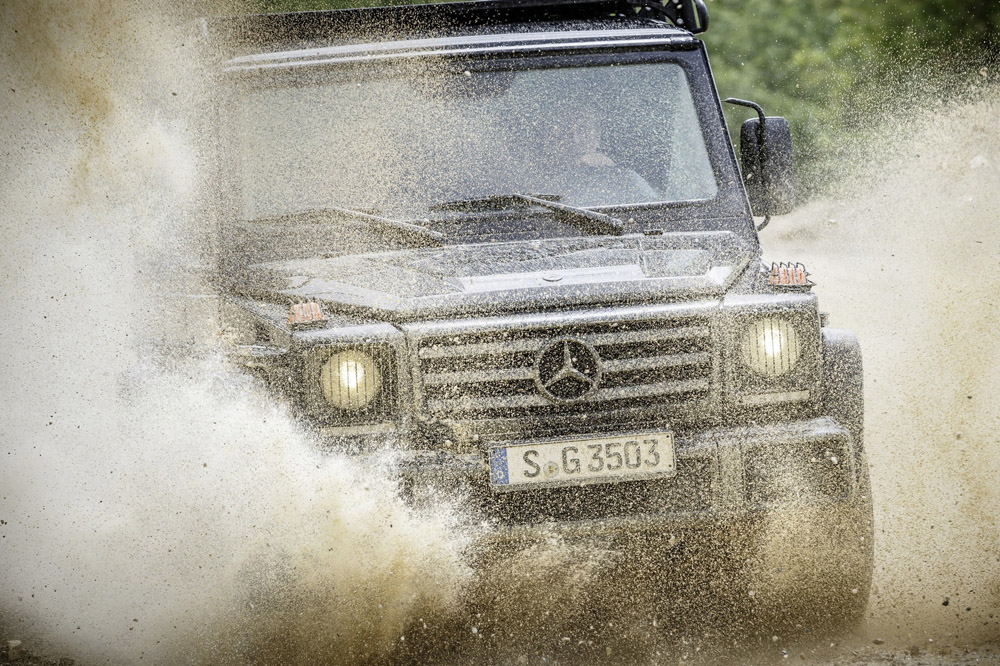 En cuanto al apartado mecánico, esta todoterreno únicamente se ofrece en versión G 350d Professional 2016 con un propulsor 3.0 V6 diésel de 245 CV más eficiente que antes y que está asociado a un cambio automático 7G-Tronic Plus de siete relaciones. Este bloque está ligado a un eficaz sistema de tracción a las cuatro ruedas permanente, con reductora y tres diferenciales bloqueables electrónicamente. Además, cuenta con suspensiones específicas que aumentan su altura libre al suelo en un centímetro, por lo que mejora los ángulos de salida, ataque y ventral.