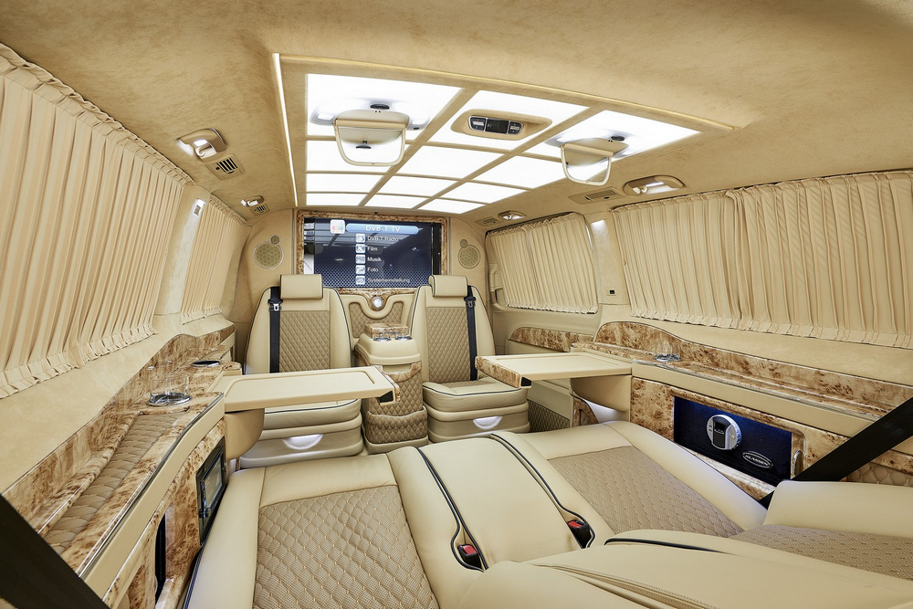 Y es que sabiamente, los chicos de Larte Design han escogido a una de las empresas más prestigiosas del planeta en lo que a personalización de interiores se refiere para crear este Clase V Black Crystal: Klassen. Esta firma está especializada en el diseño y fabricación de interiores para aviones privados, embarcaciones de gran eslora y vehículos.