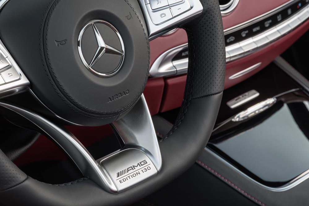 El Mercedes S 63 AMG 4MATIC Cabriolet ‘Edition 130’, que tiene un precio de 226.457 euros, eso en Alemania, adopta un insignia en la consola central y un grabado en la parte inferior del volante que indican que se trata de una edición especial. Asimismo, Mercedes entrega con el vehículo una funda hecha a medida con las letras bordadas ‘Edition 130 - 1 de 130’ y un paquete de bienvenida compuesto por una caja de aluminio con la llave ‘Edition 130’.