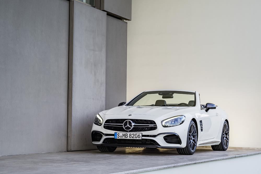 El nuevo Mercedes SL adopta un diseño similar al del deportivo (prueba) Mercedes-AMG GT, el modelo más prestacional de la gama actual de la firma de la estrella. Así, su frontal acoge una parrilla con un diseño de tipo diamante que está flanqueada por dos faros de nuevo diseño y por un paragolpes con mayores entradas de refrigeración. En la zaga también hay cambios, puesto que el difusor y el paragolpes son de nueva factura. Asimismo, los pilotos mantienen la forma, pero ahora son completamente rojos.