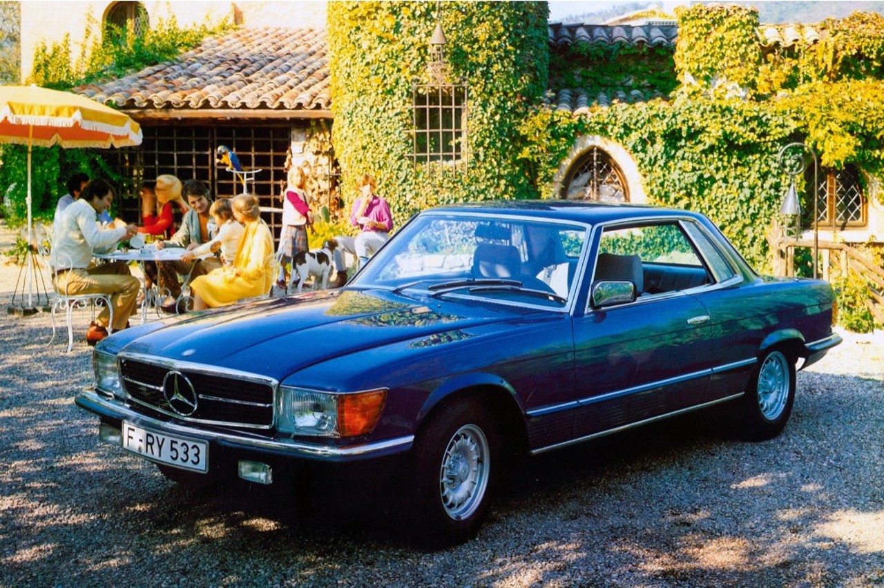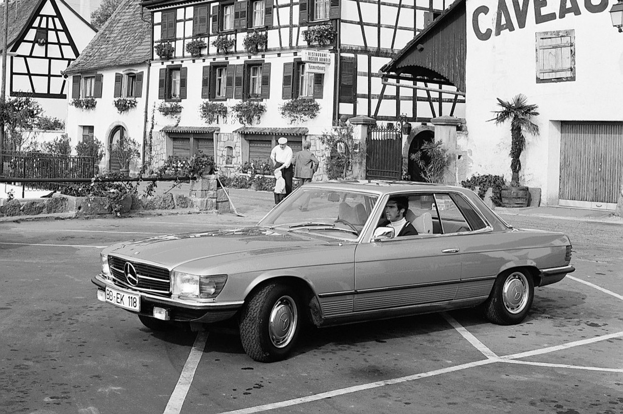 El estreno se produjo en el Salón de París de 1971. Se trataba de un vehículo deportivo, coupé y muy elegante, que combinaba la conducción dinámica con el confort, ideal para realizar viajes largos. El modelo exhibido en la cita parisina fue un 350 SLC, aunque más adelante aparecieron los 450 SLC y 500 SLC.