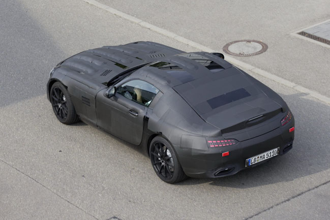 La firma de la estrella ha publicado una serie de fotos del Mercedes SLC. Como podrás comprobar, el ‘baby SLS’ adopta camuflaje ‘hasta las válvulas’, pero, aún así, se pueden sacar una serie de conclusiones. El C190, que es como se le conoce internamente, presentará una imagen muy parecida a la del SLS AMG. A ello contribuye el largo capó y la posición del cockpit, que está situado casi en el eje posterior. El nuevo SLC no equiparía las puertas tipo ‘alas de gaviota’ de su ‘hermano mayor’.