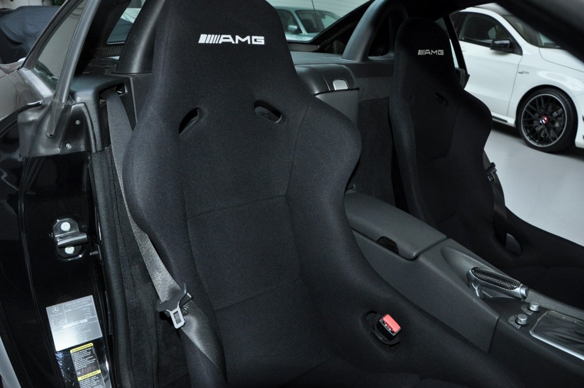 En su construcción, Mercedes-AMG empleó multitud de componentes fabricados con polímeros reforzados con fibra de carbono, como las aletas delanteras. Además, eliminaron el techo rígido retráctil en favor de un fijo. Esto permitió junto con el resto de cambios reducir el peso en 45 kg (1.495 kg en total). Por dentro, destacan los asientos deportivos AMG, los paneles de fibra de carbono de las puertas o las inserciones decorativas construidas con este mismo material.