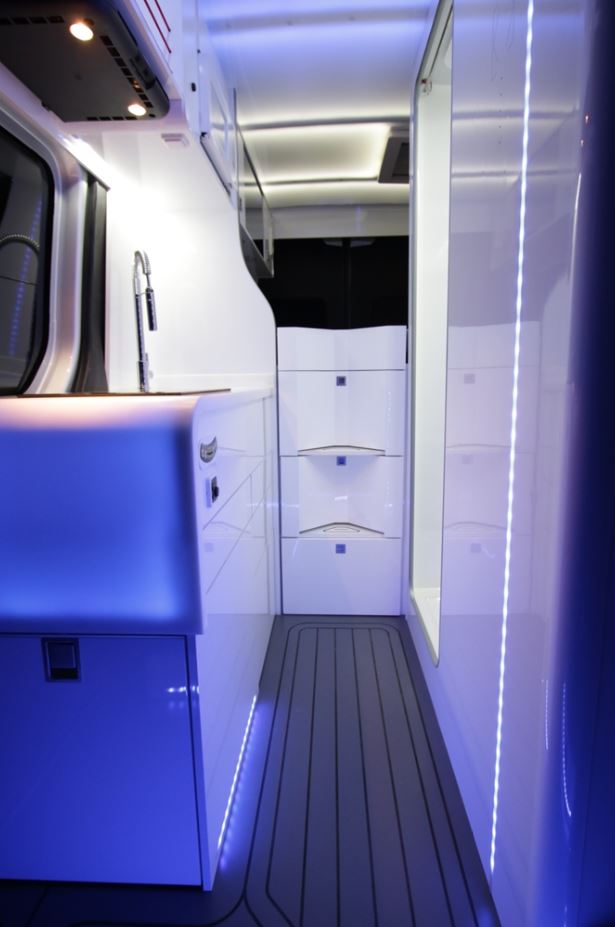 El exterior no presenta mayores cambios más allá de una rampa de acceso lateral, un toldo desplegable y ventanas laterales posteriores abultadas para aumentar el espacio interior. Sin embargo, el interior presenta todo un mar de opciones, equipamiento posibilidades bajo un diseño funcional, ergonómico y minimalista.