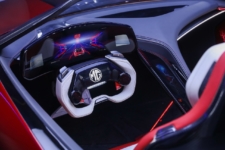 En el habitáculo reina el minimalismo, dejando protagonismo tan solo a un volante al más puro estilo de carreras y un majestuoso cuadro de mandos completamente digital que se encuentra arropado por una barra vertical ideada para separar ambos asientos y, al mismo tiempo, ofrecer diferentes controles.