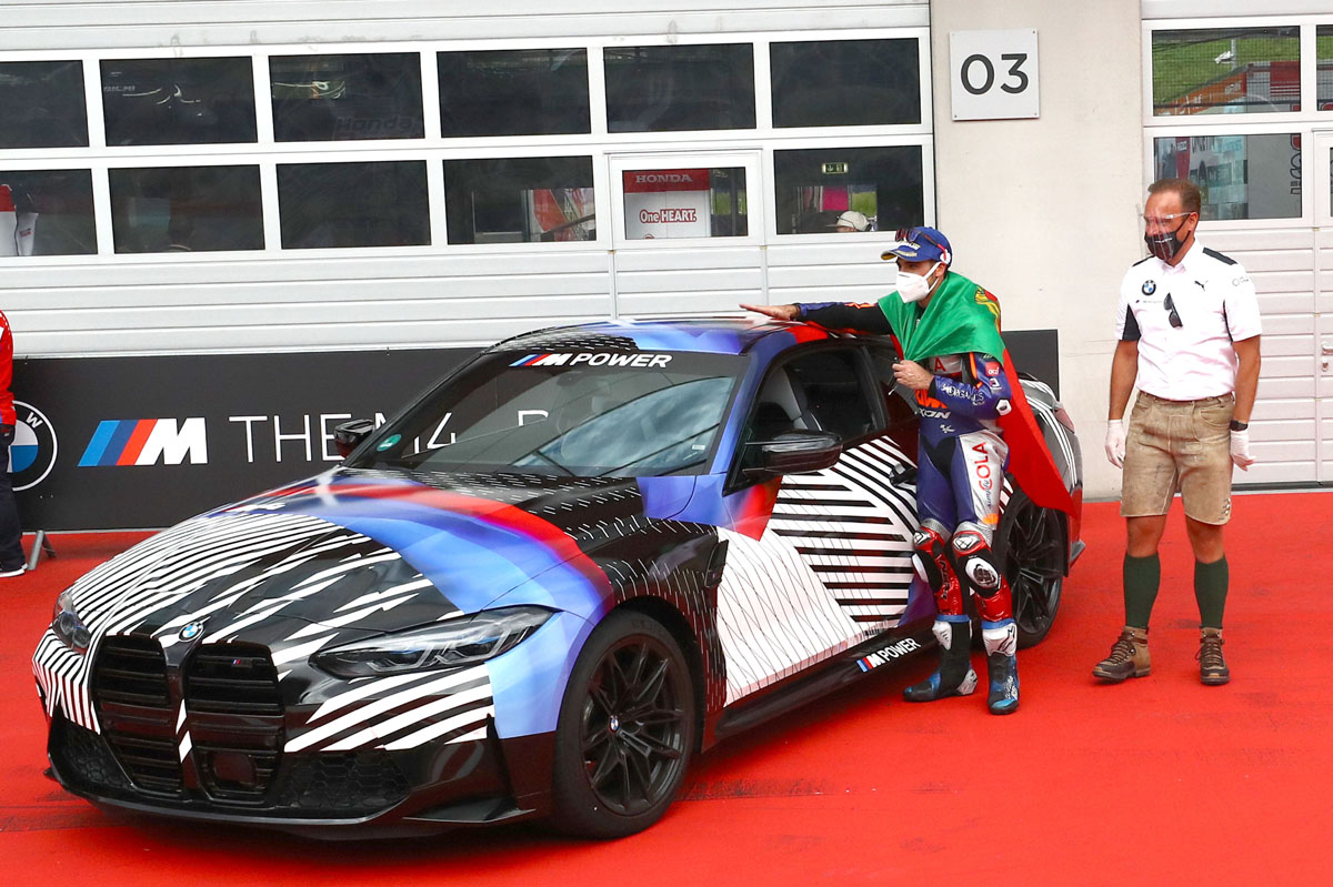 Hasta ahora, BMW había obsequiado al campeón absoluto de MotoGP en numerosas ocasiones con el BMW M Award (que Marc Márquez ha ganado en las últimas siete ediciones). Pero esta es la primera vez que BMW M GmbH cede uno de sus coches para el vencedor de un gran premio. Una prueba que precisamente patrocinaba la división deportiva de la firma alemana. Así que Miguel Oliveira gana un BMW M4 Coupé y también se ha convertido en el primer piloto en llevarse un premio de este tipo.