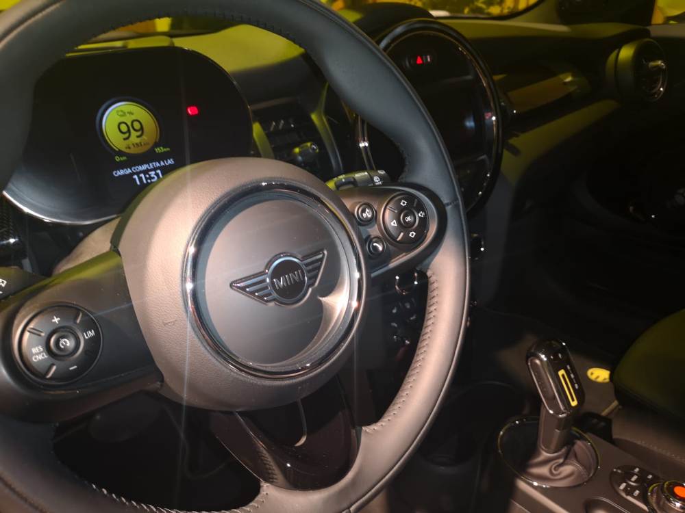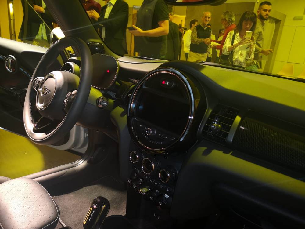 Hemos acudido a la presentación estática del nuevo MINI Cooper SE, el primer MINI 100% eléctrico. En cuanto a tamaño, es igual que un Cooper S de tres puertas, algo que se replica en la habitabilidad interior. Las llantas son exclusivas y hay tres modelos de 16 y 17. Dentro una pantalla de 5,5 pulgadas en la que se ve la potencia, el nivel de carga... desaparece el freno de mano, que ahora es eléctrico, y añade un modo de conducción ultra eficiente, con que ahora son cuatro. También ofrece dos niveles de regeneración en la frenada, uno más intenso y otro menos.
