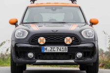Un portaequipajes de aluminio y unos faros LED auxiliares en la parrilla contribuyen a mejorar la apariencia todoterreno del MINI Countryman by X-Raid. Se trata de una mejora sutil que destaca con los detalles en negro piano de MINI combinados con los toques naranjas de X-Raid.