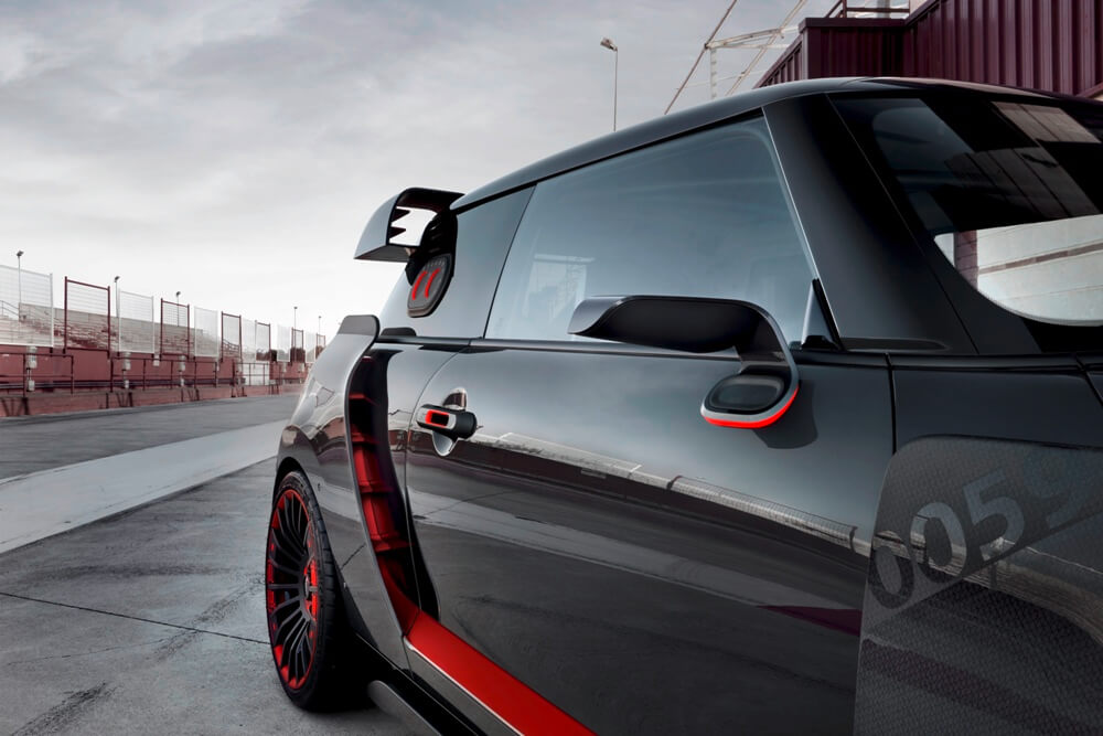 Mientras tanto, la carrocería ha sido bañada por completo en color Black Jack Anthracite con detalles en color Curbside Red metalizado, una tonalidad del rojo mate. Además, los componentes en fibra de carbono visible dejan ver el número 0059 que rinde homenaje al año en el que nació el MINI clásico, en 1959. No sabemos nada sobre el sistema de propulsión, aunque este estudio de diseño podría acabar derivando en un modelo de producción. Recuerda que MINI siempre ha lanzado ediciones GP limitadas con producciones de 2.000 unidades.