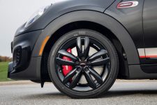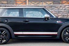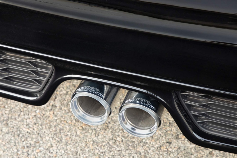 Y volviendo al MINI John Cooper Works Knights Edition, decir que combina varios colores en su exterior e incorpora múltiples opciones y accesorios. El negro es el tono predominante en el por fuera, donde también presenta detalles en gris y elementos en rojo para enfatizar su carácter deportivo. Destaca su sistema de escape John Cooper Works con acabado cromado y una válvula con la que es posible variar el sonido que produce.