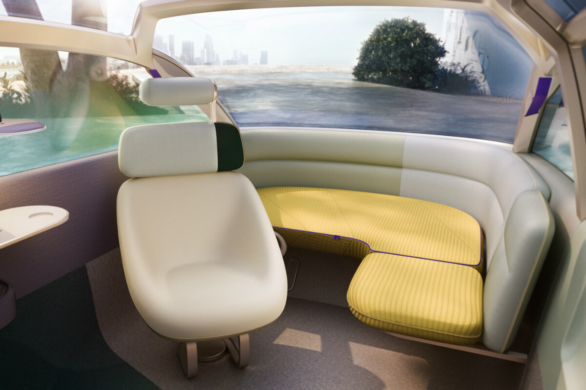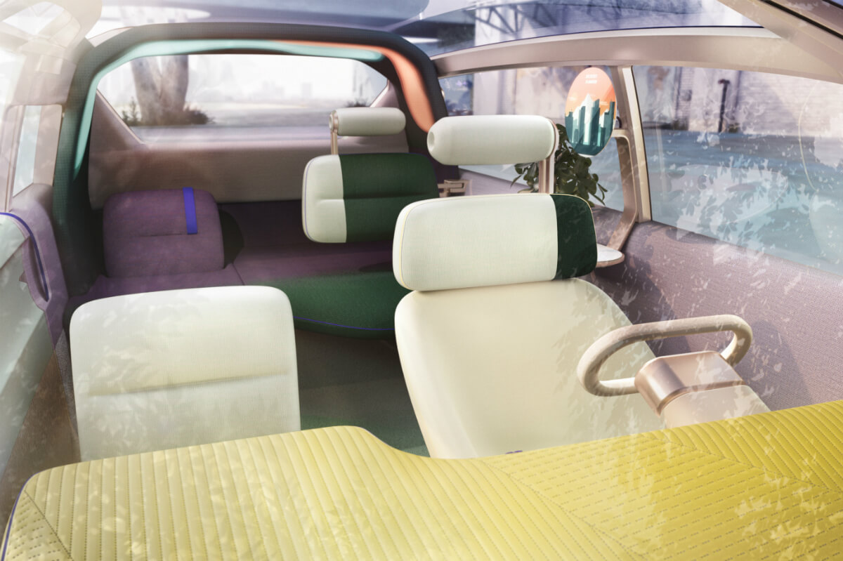 En el interior del Mini Vision Urbanaut se ha apostado por los materiales reciclados que han sido transformados en tejido de punto, el sistema de infoentretenimiento ofrece un planificador de viajes y acceso a listas de reproducción, audiolibros y podcasts que se pueden escuchar durante el trayecto y en los asientos traseros el sistema de iluminación LED está pensado para la lectura.