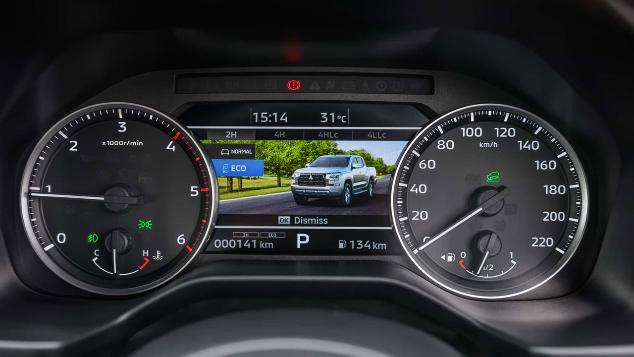 La caja de carga, por su parte, se sitúa ahora 45 mm más cerca del suelo para facilitar las operaciones de carga y descarga. En cuanto al habitáculo, presenta un diseño que recuerda mucho al visto en el Mitsubishi Outlander 2024. Eso sí, el de la pick-up es un punto más conservador y clásico, pues mantiene elementos como un cuadro de mandos con relojes analógicos frente a la pantalla del SUV.