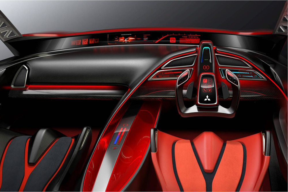 Estéticamente, el Mitsubishi XR-PHEV es un prototipo de diseño radical pero armonioso y bien proporcionado. El agresivo frontal, que simula la presencia de una parrilla de dimensiones colosales, está dominado por los afilados faros delanteros, que le dan al modelo una mirada muy agresiva. En la vista lateral, destaca la marcada línea de cintura ascendente, que se prolonga hasta llegar a solaparse con el alerón que integra el portón del maletero.